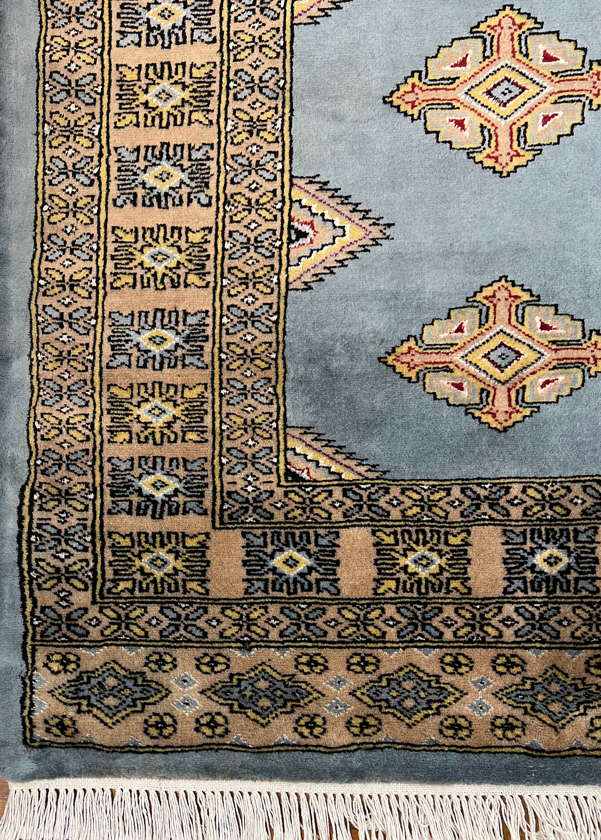 Boukhara est un terme largement utilisé en Occident pour désigner les tapis et moquettes fabriqués par diverses tribus turkmènes d'Asie centrale. Leur histoire remonte à plusieurs siècles. Les Turkmènes étaient situés au nord de ce qu’on appelle aujourd’hui l’Afghanistan. Au début des années 1900, le nom de Boukhara, ville d’Ouzbékistan, fut donné à ces tapis. Les Turkomans étaient un peuple industrieux qui troquait son commerce contre de la nourriture, des vêtements, etc. En conséquence, leur tissage apparaissait invariablement dans les bazars (un type de marché) dans des villes comme Boukhara, d'où son nom. La ville a effectivement servi de point de transit pour certains tapis turkmènes en route vers l'Occident. De nos jours, les Bokharas sont considérés comme l'un des tapis les plus raffinés d'Afghanistan et du Pakistan, se distinguant par leurs nœuds extra fins et leur toucher doux et soyeux. Ils sont également populaires dans le monde entier en raison de leur adéquation à presque tous les espaces.
