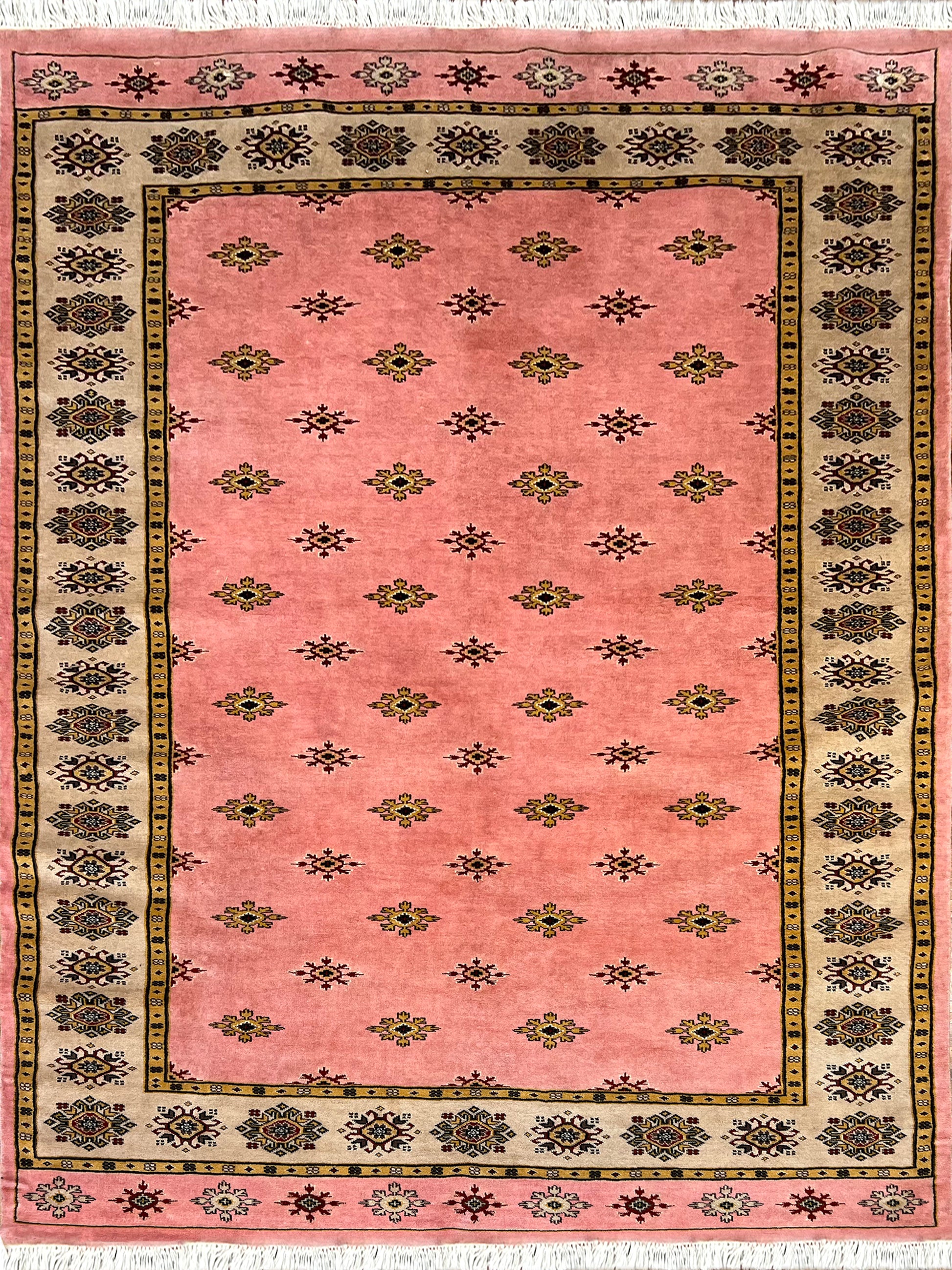 Boukhara est un terme largement utilisé en Occident pour désigner les tapis et moquettes fabriqués par diverses tribus turkmènes d'Asie centrale. Leur histoire remonte à plusieurs siècles. Les Turkmènes étaient situés au nord de ce qu’on appelle aujourd’hui l’Afghanistan. Au début des années 1900, le nom de Boukhara, ville d’Ouzbékistan, fut donné à ces tapis. Les Turkomans étaient un peuple industrieux qui troquait son commerce contre de la nourriture, des vêtements, etc. En conséquence, leur tissage apparaissait invariablement dans les bazars (un type de marché) dans des villes comme Boukhara, d'où son nom. La ville a effectivement servi de point de transit pour certains tapis turkmènes en route vers l'Occident. De nos jours, les Bokharas sont considérés comme l'un des tapis les plus raffinés d'Afghanistan et du Pakistan, se distinguant par leurs nœuds extra fins et leur toucher doux et soyeux. Ils sont également populaires dans le monde entier en raison de leur adéquation à presque tous les espaces.