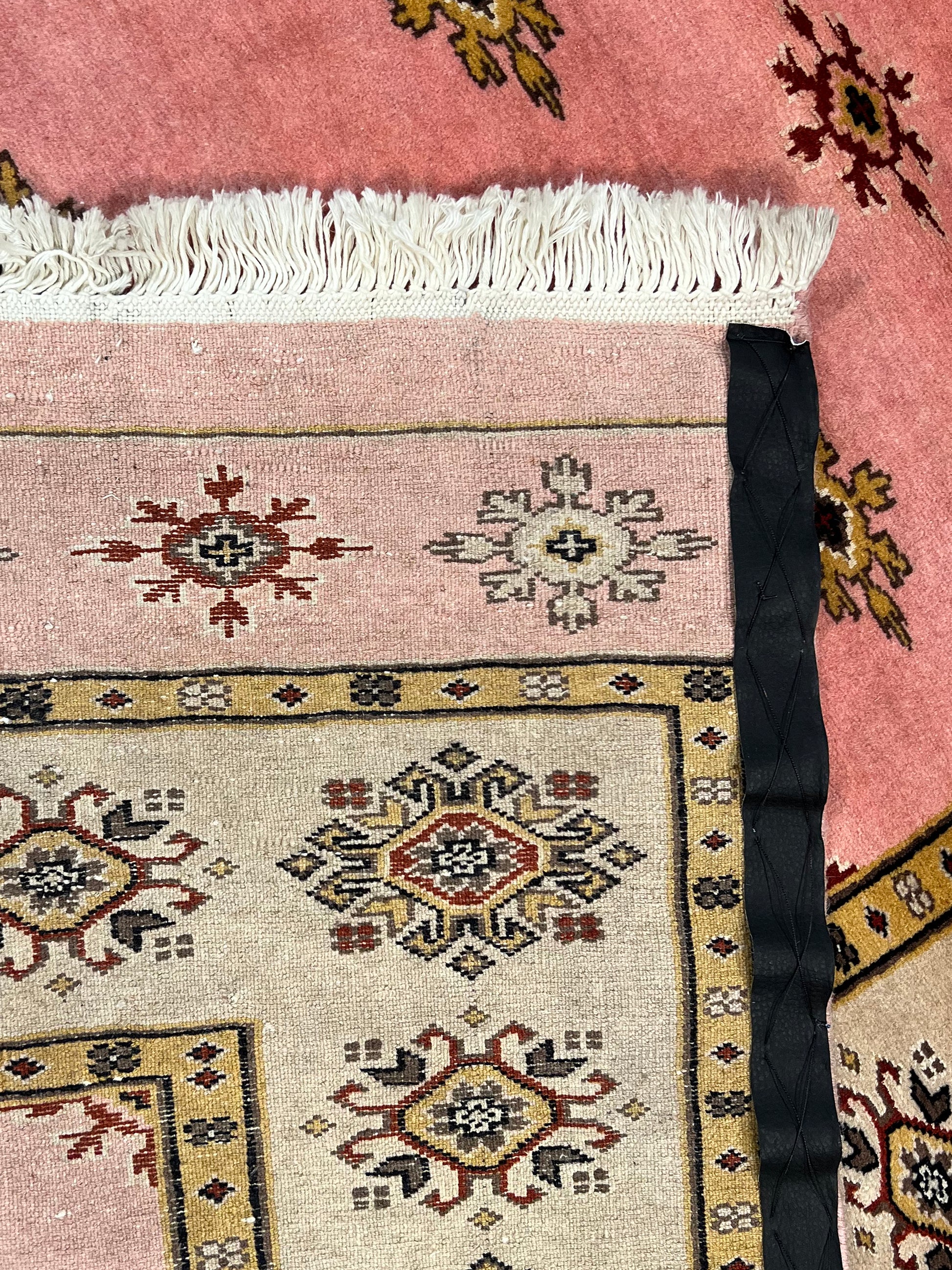 Les tapis Boukhara contiennent un motif répétitif connu sous le nom de « gul » que l'on trouve couramment sur son champ principal dans des tailles plus grandes et sur ses bordures dans des tailles plus petites. UN gul (également orthographié comme gol, gol ou gül ) est un motif en forme de médaillon que l'on retrouve généralement dans les tapis traditionnels tissés à la main d'Asie centrale, d'Asie occidentale et de certaines parties d'Asie du Sud. Ces motifs sont très anciens et d’origine animiste, antérieurs aux époques islamique et chrétienne. L'origine du terme est incertaine et elle est encore contestée à ce jour. En farsi, la langue parlée dans l'Iran d'aujourd'hui, on dit que cela signifie « fleur » ou « rose ». Pendant ce temps, dans la langue turque, le terme gül signifie une « rose » ou une « cocarde » ou même un « lac ».