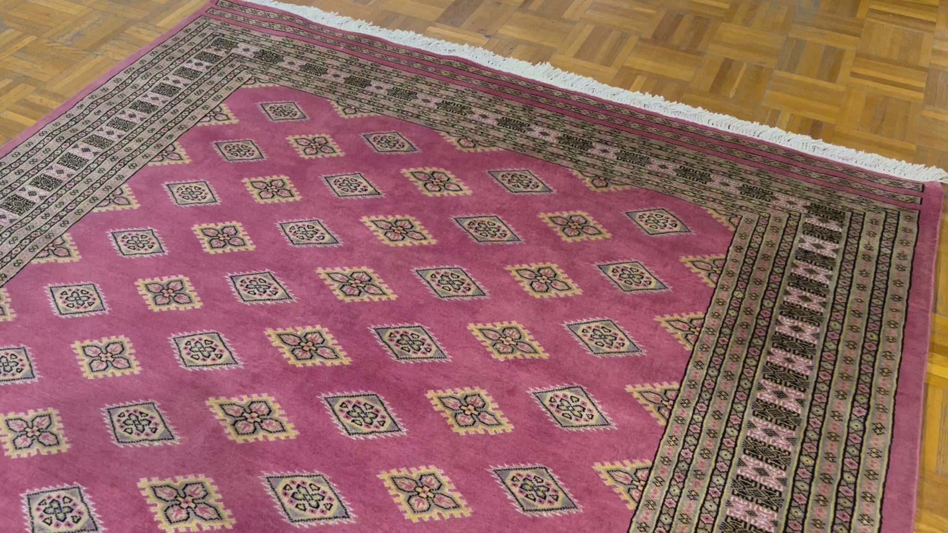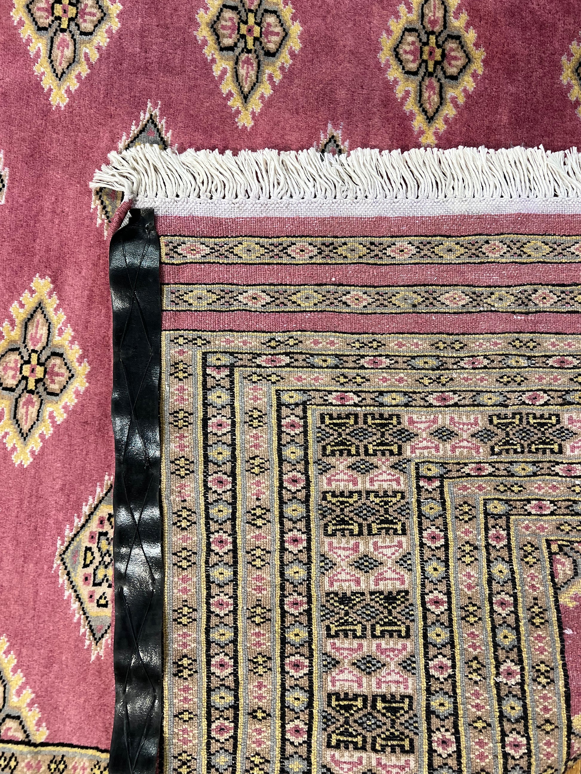 Les tapis Boukhara contiennent un motif répétitif connu sous le nom de « gul » que l'on trouve couramment sur son champ principal dans des tailles plus grandes et sur ses bordures dans des tailles plus petites. UN gul (également orthographié comme gol, gol ou gül ) est un motif en forme de médaillon que l'on retrouve généralement dans les tapis traditionnels tissés à la main d'Asie centrale, d'Asie occidentale et de certaines parties d'Asie du Sud. Ces motifs sont très anciens et d’origine animiste, antérieurs aux époques islamique et chrétienne. L'origine du terme est incertaine et elle est encore contestée à ce jour. En farsi, la langue parlée dans l'Iran d'aujourd'hui, on dit que cela signifie « fleur » ou « rose ». Pendant ce temps, dans la langue turque, le terme gül signifie une « rose » ou une « cocarde » ou même un « lac ».
