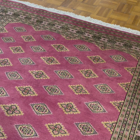 Boukhara est un terme largement utilisé en Occident pour désigner les tapis et moquettes fabriqués par diverses tribus turkmènes d'Asie centrale. Leur histoire remonte à plusieurs siècles. Les Turkmènes étaient situés au nord de ce qu’on appelle aujourd’hui l’Afghanistan. Au début des années 1900, le nom de Boukhara, ville d’Ouzbékistan, fut donné à ces tapis. Les Turkomans étaient un peuple industrieux qui troquait son commerce contre de la nourriture, des vêtements, etc. En conséquence, leur tissage apparaissait invariablement dans les bazars (un type de marché) dans des villes comme Boukhara, d'où son nom. La ville a effectivement servi de point de transit pour certains tapis turkmènes en route vers l'Occident. De nos jours, les Bokharas sont considérés comme l'un des tapis les plus raffinés d'Afghanistan et du Pakistan, se distinguant par leurs nœuds extra fins et leur toucher doux et soyeux. Ils sont également populaires dans le monde entier en raison de leur adéquation à presque tous les espaces.