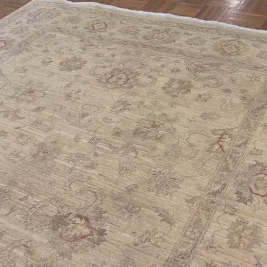 Ce tapis soigneusement noué à la main est composé à 100 % de pure laine d'agneau. La laine est une matière naturelle, représentant un choix sain et respectueux de l'environnement avec une longue liste d'avantages. Le poil de ce tapis en laine est hygiénique et hypoallergénique, car le poil naturel empêche également la croissance des bactéries et des acariens. Il représente un excellent choix pour les personnes asthmatiques en raison de sa capacité naturelle de filtrage. Le tapis est doux sous le pied tout en restant résistant à l'usure et durable. Avec un entretien approprié adapté à ses besoins, ce tapis peut durer plus de 75 ans.