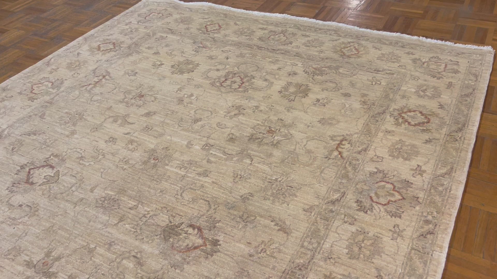 La finition de ce tapis a été réalisée selon des techniques traditionnelles vieilles de plusieurs siècles. Une fois son laborieux nouage à la main terminé, il était roulé et entièrement immergé dans un bain désinfectant où ses fibres absorbaient entièrement tout le liquide de nettoyage. Après quoi, il a été posé à plat sur le sol où une équipe de nettoyeurs a utilisé des pagaies en bois ressemblant à des rames pour pousser l'eau à travers ses fibres et en extraire les impuretés. Les coups de rame étaient synchronisés pour éviter que le tapis ne se déchire. Chaque coup resserrait encore plus les nœuds. Aucune machine n'était impliquée dans son lavage ou son séchage.