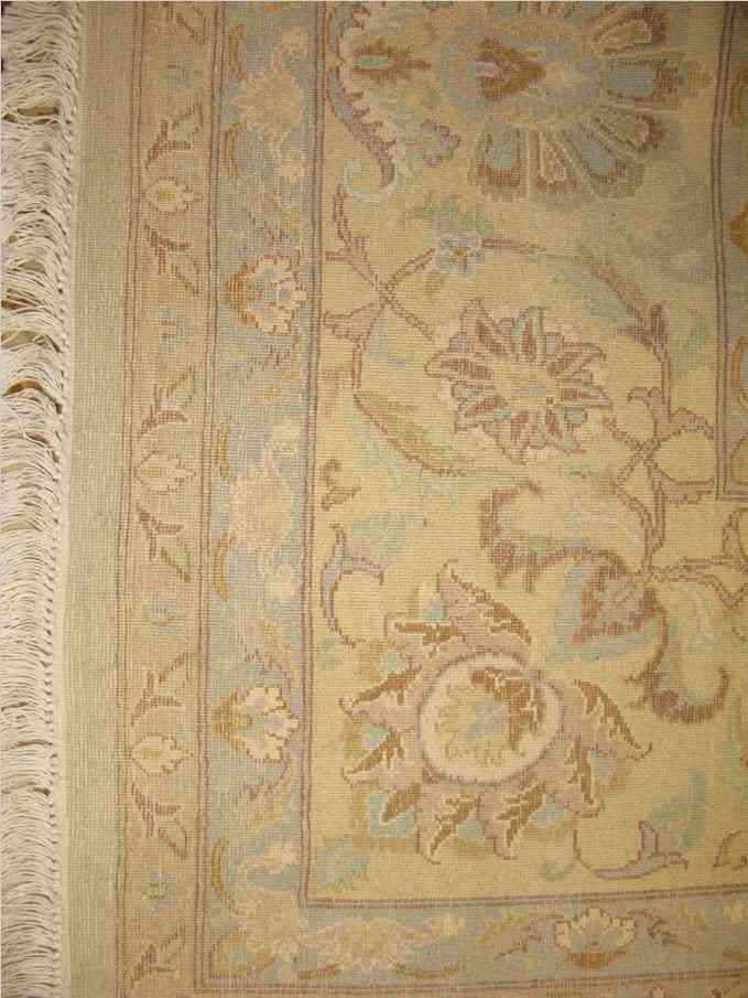 En ce qui concerne les couleurs, les Ghoum n'en comprennent pas une vaste gamme, ce sont généralement des tons vifs: rouge, bleu, bleu ciel et crème sont les plus utilisés pour le champ, même si dans les années 70, on employait des tons beaucoup plus ténus et éteints. Les Ghoum entièrement noués en soie qui représentent la pointe de diamant sont de grande importance dans la production persane contemporaine ; il s'agit de tapis au nouage très fin, riches en couleurs, nuances et détails minutieusement réalisés qui n'ont pas d'équivalents dans toute la Perse. Pour en savoir plus sur l'histoire des tapis persans, veuillez s.v.p visiter notre section: tapis iraniens.