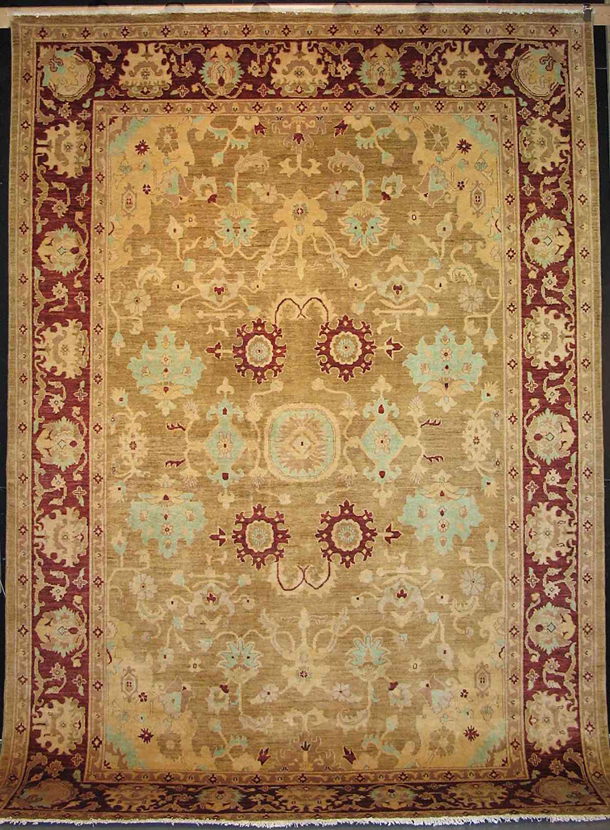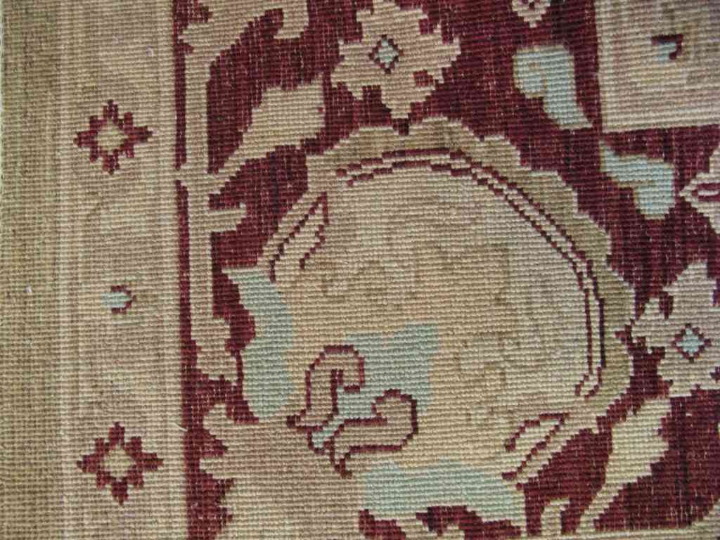 Ziegler, également orthographié Zeigler , est un terme utilisé pour décrire les tapis produits par la société anglo-suisse de la fin du XIXe siècle : Ziegler & Company ou c'est un terme utilisé pour décrire des tapis fabriqués avec des motifs et des combinaisons de couleurs similaires utilisés par la fin du XIXe siècle. ferme. Les tapis contenant ce motif sont parfois connus sous le nom de tapis Chobi (qui se traduit par bois en farsi, une référence à leur couleur naturelle créée par des teintures végétales) ou de tapis Peshawar (une ville du Pakistan connue pour produire en masse ce type de motif). La plupart des nouveaux tapis design Ziegler sont fabriqués en Afghanistan ou au Pakistan par des réfugiés afghans et contiennent des motifs floraux audacieux. Ils sont fabriqués avec des teintures végétales et leur nombre de nœuds varie généralement de 80 à 120 KPSI (Knots Per Square Inch). La laine des tapis est de haute qualité : soit de la laine Ghazni filée à la main, soit de la laine de l'Himalaya, ce qui rend son velours très résistant. Tout comme les sodas au goût de Coca-cola appelés Coke quelle que soit leur marque, les tapis design Ziegler sont connus sous le nom de Ziegler même s'ils ne sont pas produits par Ziegler & Co. Selon la personne à qui vous demandez, ils peuvent parfois être considérés comme des tapis de Sultanabad car Ziegler & Co avait des ateliers répartis dans tout le district de Sultanabad en Iran.