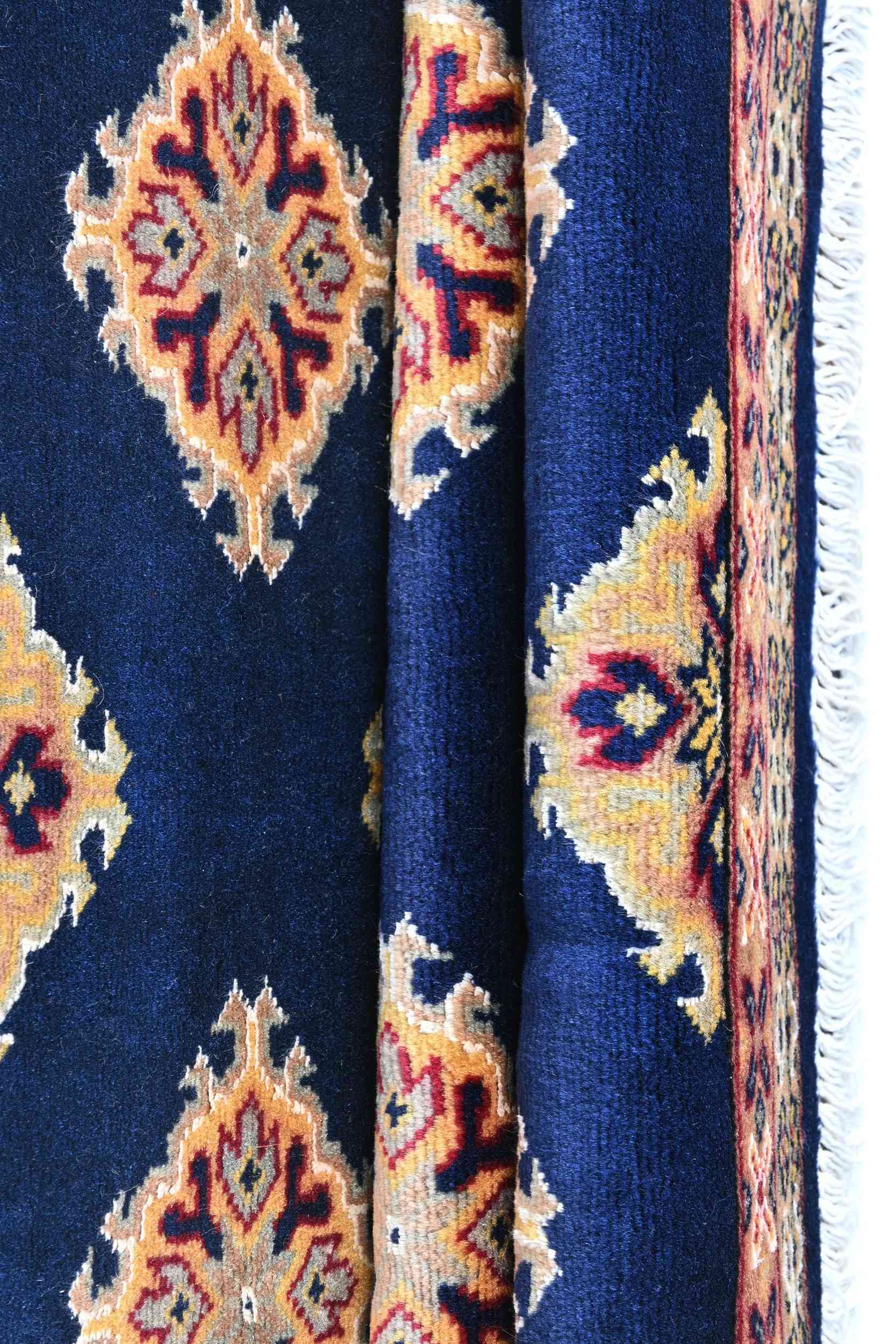 Bokhara is a term widely used in the West to refer to carpets and rugs made by various Turkmen tribes of Central Asia. Their history dates back centuries. The Turkomans were situated to the north of what is now called Afghanistan. During the early 1900s, the name of Bukhara, a city in Uzbekistan, was given to these rugs. The Turkomans were an industrious people who would barter their trade for food, clothing, etc. As a result, their weaving would invariably show up in bazaars (a type of market) in cities such as Bukhara, hence the name. The city did serve as a transit point for some Turkmen rugs on their way to the West. Nowadays, Bokharas are considered among the finest carpets in Afghanistan and Pakistan, distinguished by their extra fine knots and soft, silky touch. They are also popular worldwide due to their suitability to almost any space.