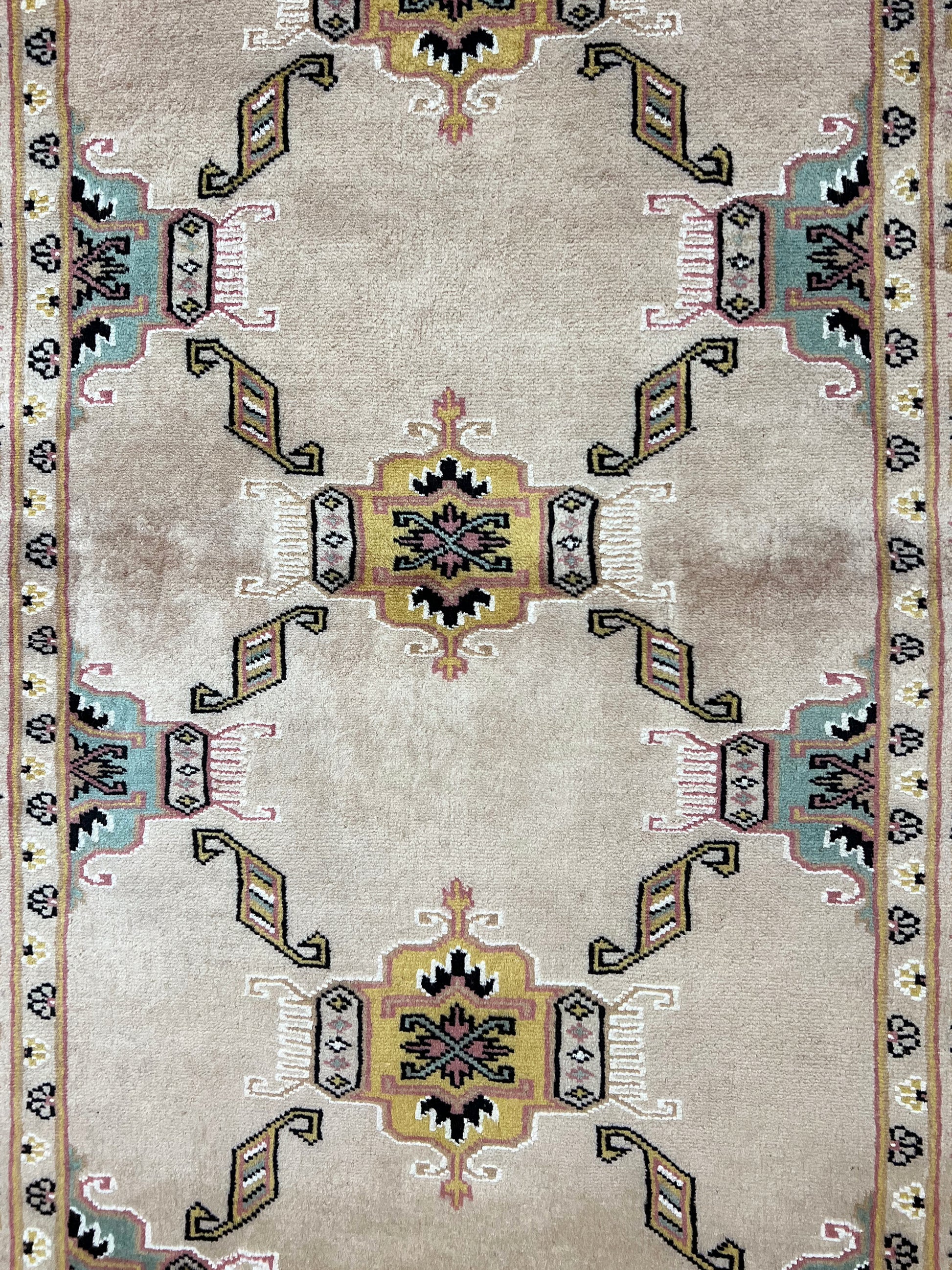 Bokhara is a term widely used in the West to refer to carpets and rugs made by various Turkmen tribes of Central Asia. Their history dates back centuries. The Turkomans were situated to the north of what is now called Afghanistan. During the early 1900s, the name of Bukhara, a city in Uzbekistan, was given to these rugs. The Turkomans were an industrious people who would barter their trade for food, clothing, etc. As a result, their weaving would invariably show up in bazaars (a type of market) in cities such as Bukhara, hence the name. The city did serve as a transit point for some Turkmen rugs on their way to the West. Nowadays, Bokharas are considered among the finest carpets in Afghanistan and Pakistan, distinguished by their extra fine knots and soft, silky touch. They are also popular worldwide due to their suitability to almost any space.