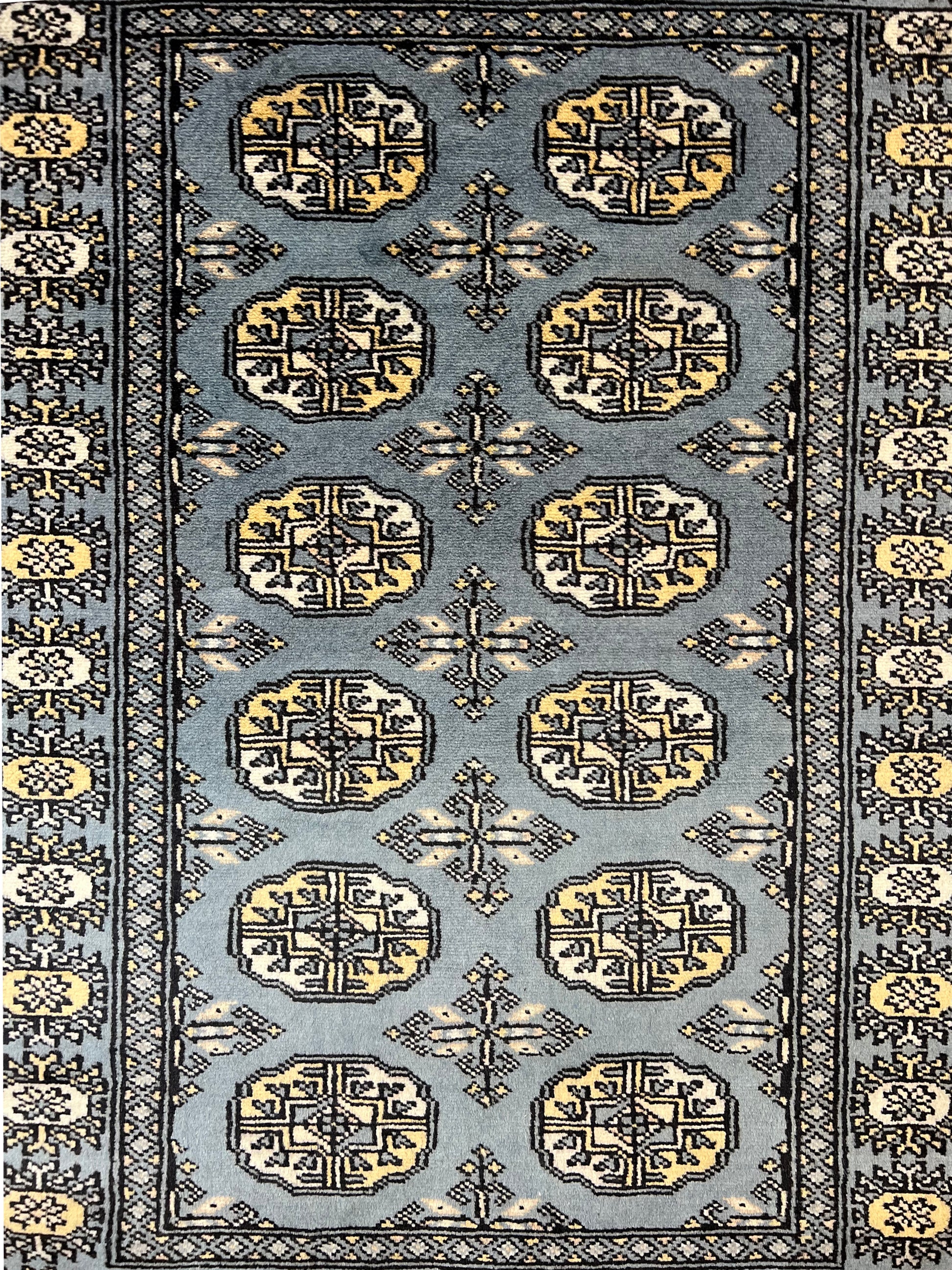 Bokhara is a term widely used in the West to refer to carpets and rugs made by various Turkmen tribes of Central Asia. Their history dates back centuries. The Turkomans were situated to the north of what is now called Afghanistan. During the early 1900s, the name of Bukhara, a city in Uzbekistan, was given to these rugs. The Turkomans were an industrious people who would barter their trade for food, clothing, etc. As a result, their weaving would invariably show up in bazaars (a type of market) in cities such as Bukhara, hence the name. The city did serve as a transit point for some Turkmen rugs on their way to the West. Nowadays, Bokharas are considered among the finest carpets in Afghanistan and Pakistan, distinguished by their extra fine knots and soft, silky touch. They are also popular worldwide due to their suitability to almost any space.