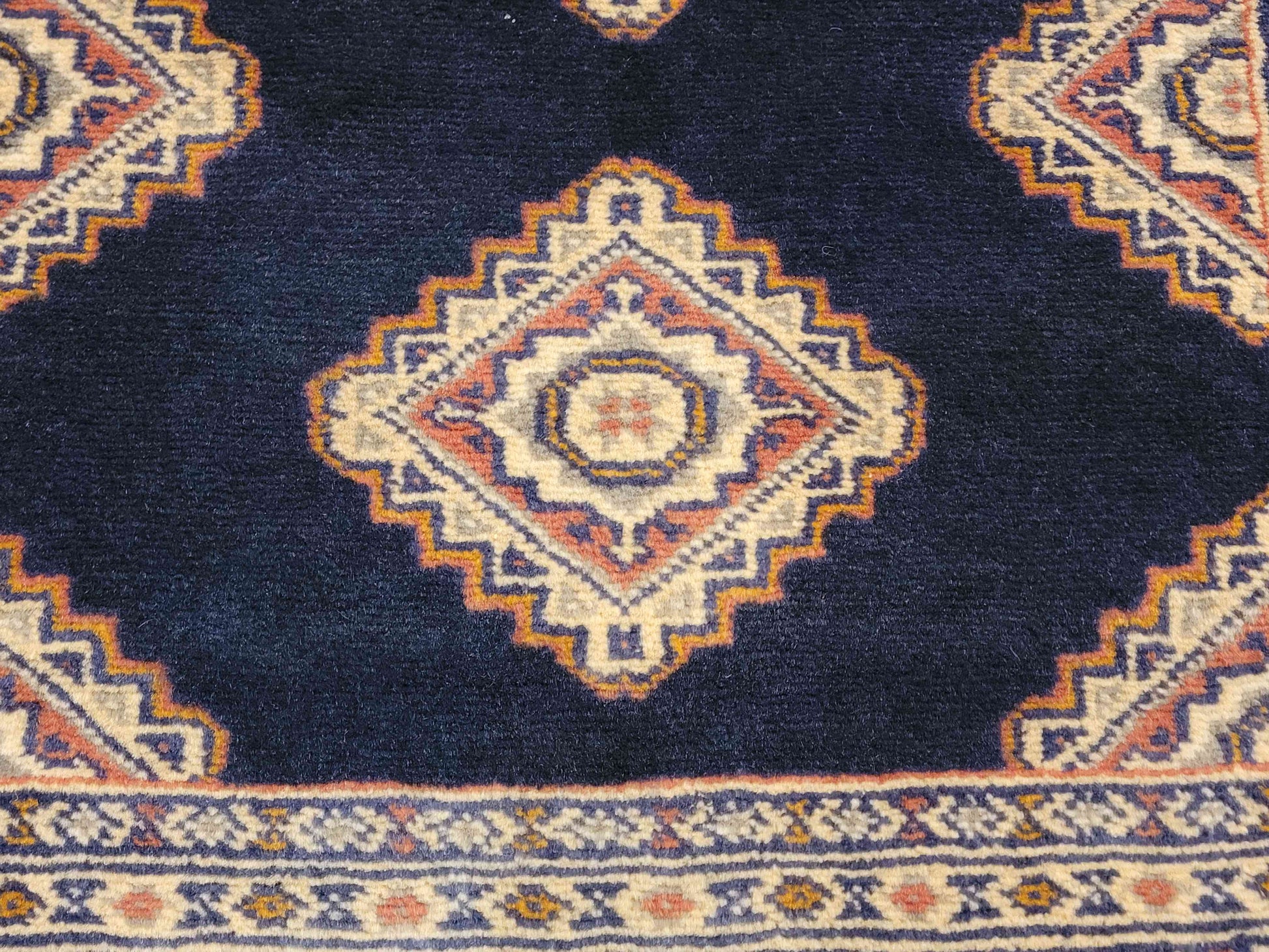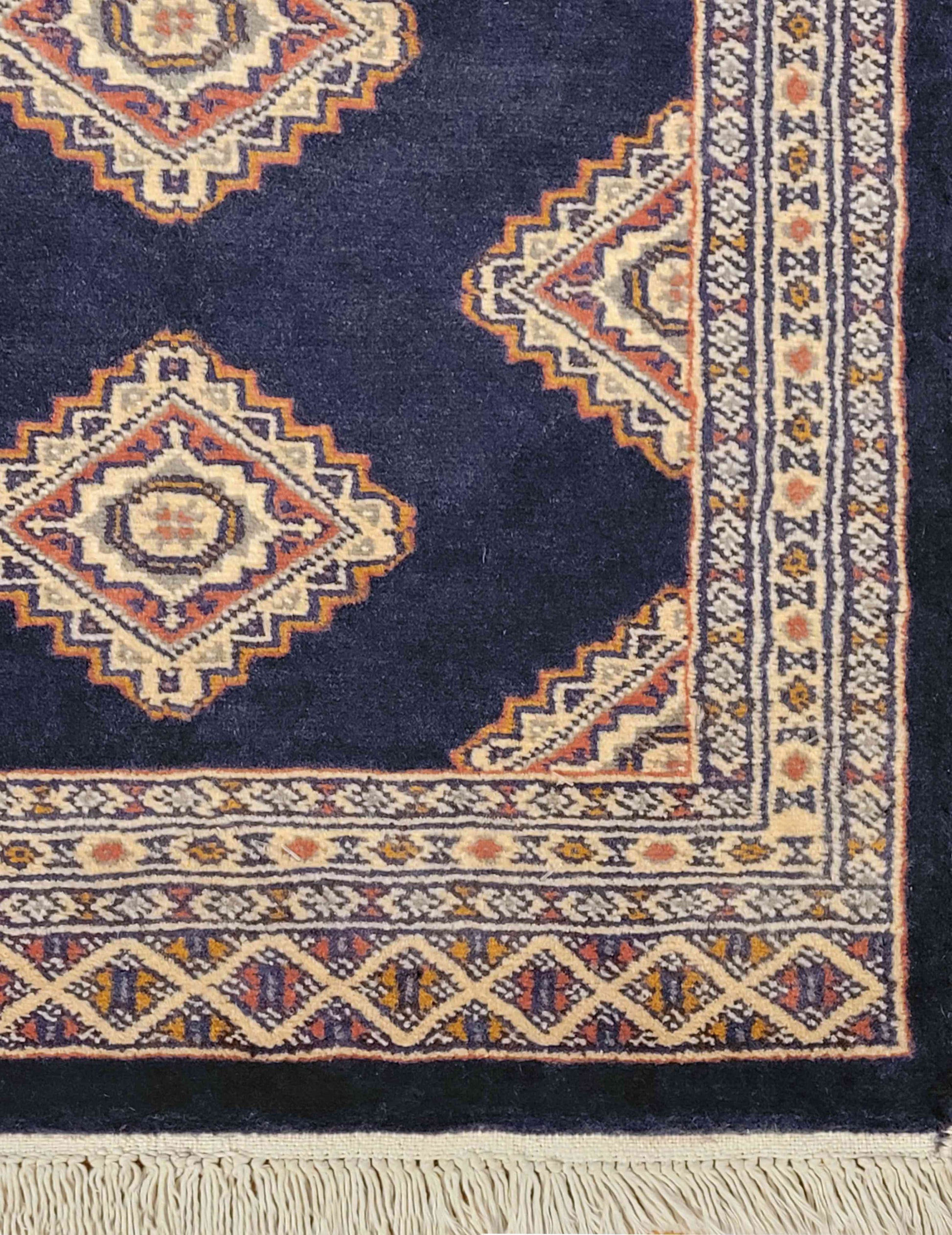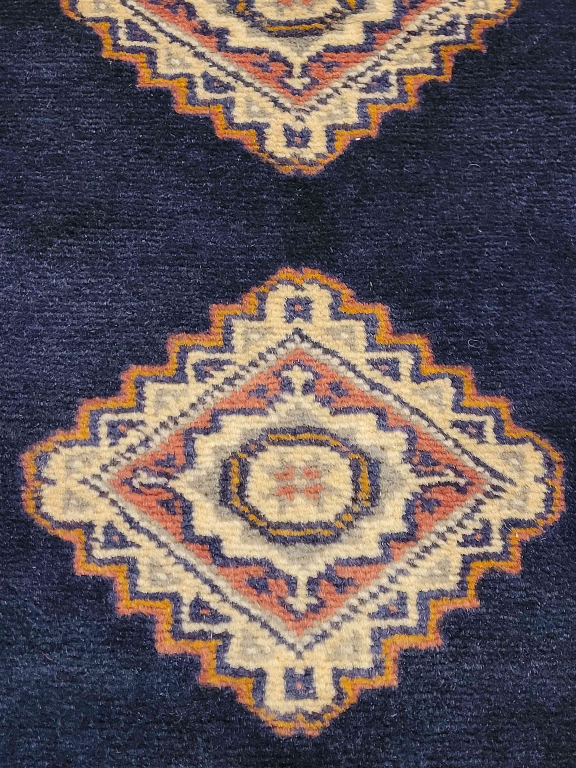 Bokhara is a term widely used in the West to refer to carpets and rugs made by various Turkmen tribes of Central Asia. Their history dates back centuries. The Turkomans were situated to the north of what is now called Afghanistan. During the early 1900s, the name of Bukhara, a city in Uzbekistan, was given to these rugs. The Turkomans were an industrious people who would barter their trade for food, clothing, etc. As a result, their weaving would invariably show up in bazaars (a type of market) in cities such as Bukhara, hence the name. The city did serve as a transit point for some Turkmen rugs on their way to the West. Nowadays, Bokharas are considered among the finest carpets in Afghanistan and Pakistan, distinguished by their extra fine knots and soft, silky touch. They are also popular worldwide due to their suitability to almost any space.