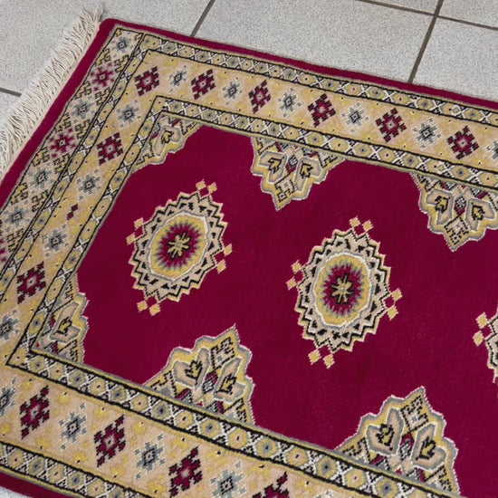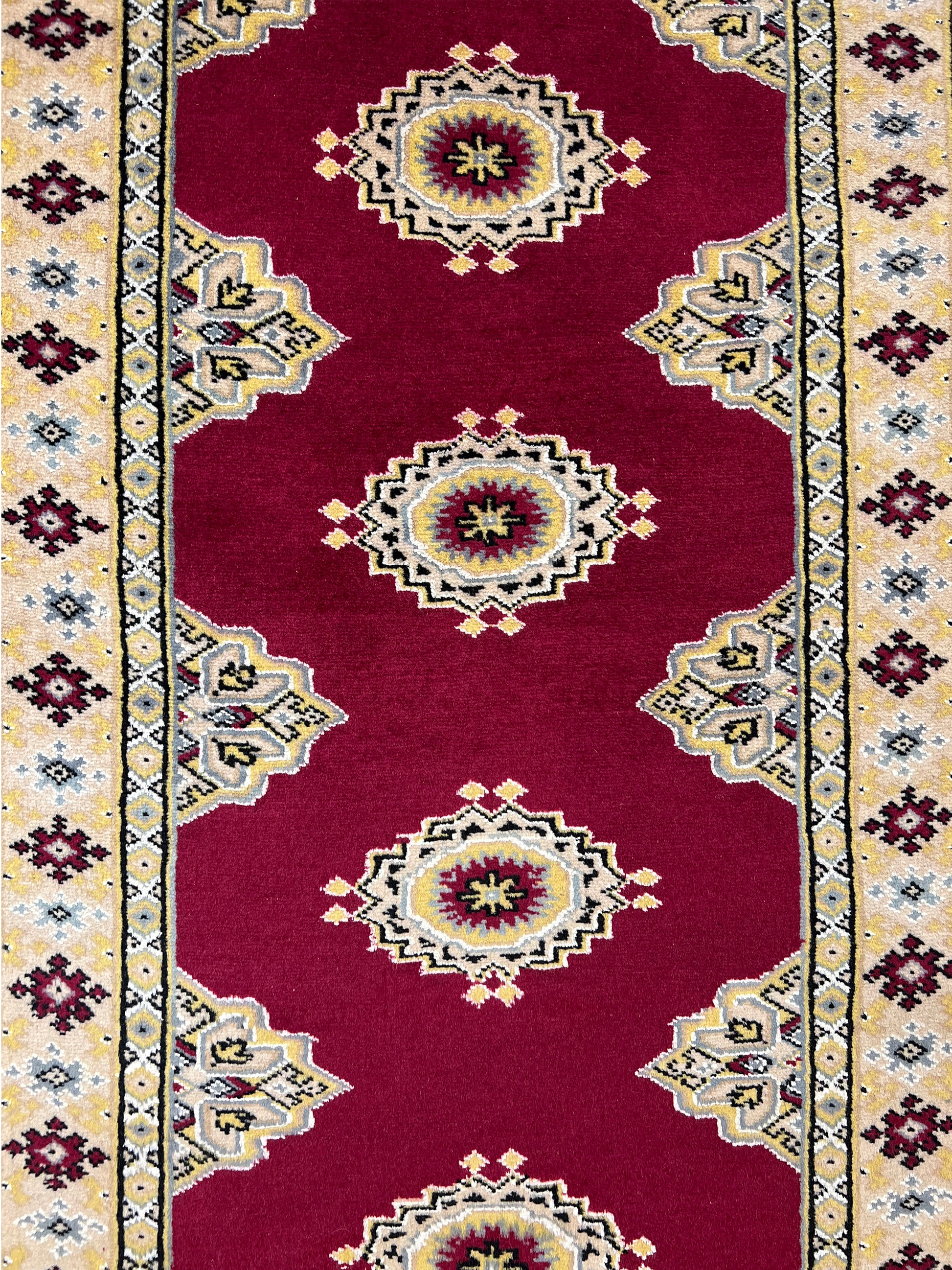 Bokhara is a term widely used in the West to refer to carpets and rugs made by various Turkmen tribes of Central Asia. Their history dates back centuries. The Turkomans were situated to the north of what is now called Afghanistan. During the early 1900s, the name of Bukhara, a city in Uzbekistan, was given to these rugs. The Turkomans were an industrious people who would barter their trade for food, clothing, etc. As a result, their weaving would invariably show up in bazaars (a type of market) in cities such as Bukhara, hence the name. The city did serve as a transit point for some Turkmen rugs on their way to the West. Nowadays, Bokharas are considered among the finest carpets in Afghanistan and Pakistan, distinguished by their extra fine knots and soft, silky touch. They are also popular worldwide due to their suitability to almost any space.