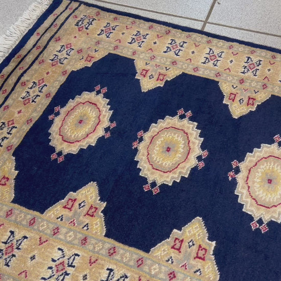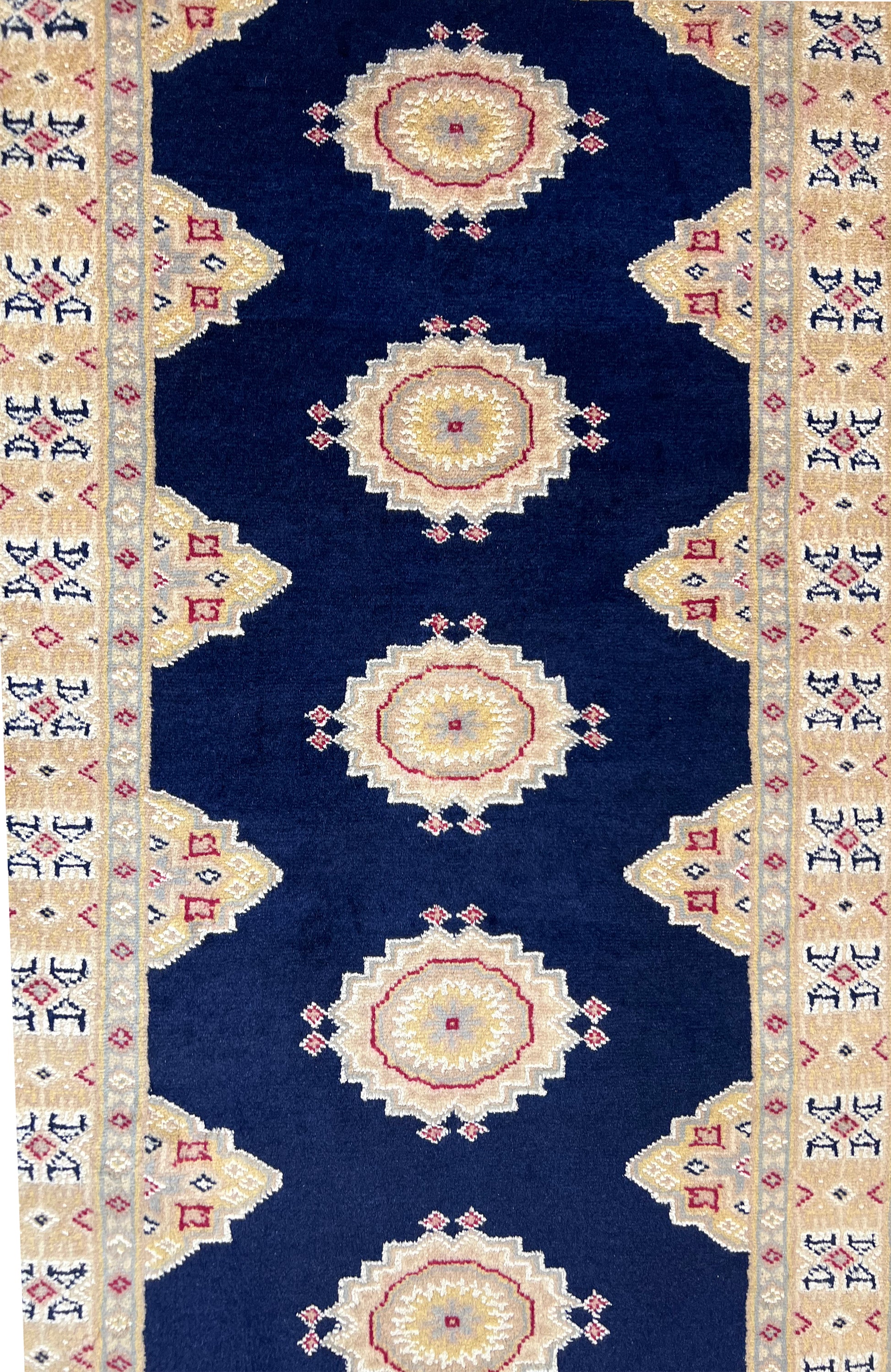 Bokhara is a term widely used in the West to refer to carpets and rugs made by various Turkmen tribes of Central Asia. Their history dates back centuries. The Turkomans were situated to the north of what is now called Afghanistan. During the early 1900s, the name of Bukhara, a city in Uzbekistan, was given to these rugs. The Turkomans were an industrious people who would barter their trade for food, clothing, etc. As a result, their weaving would invariably show up in bazaars (a type of market) in cities such as Bukhara, hence the name. The city did serve as a transit point for some Turkmen rugs on their way to the West. Nowadays, Bokharas are considered among the finest carpets in Afghanistan and Pakistan, distinguished by their extra fine knots and soft, silky touch. They are also popular worldwide due to their suitability to almost any space.