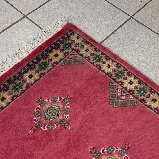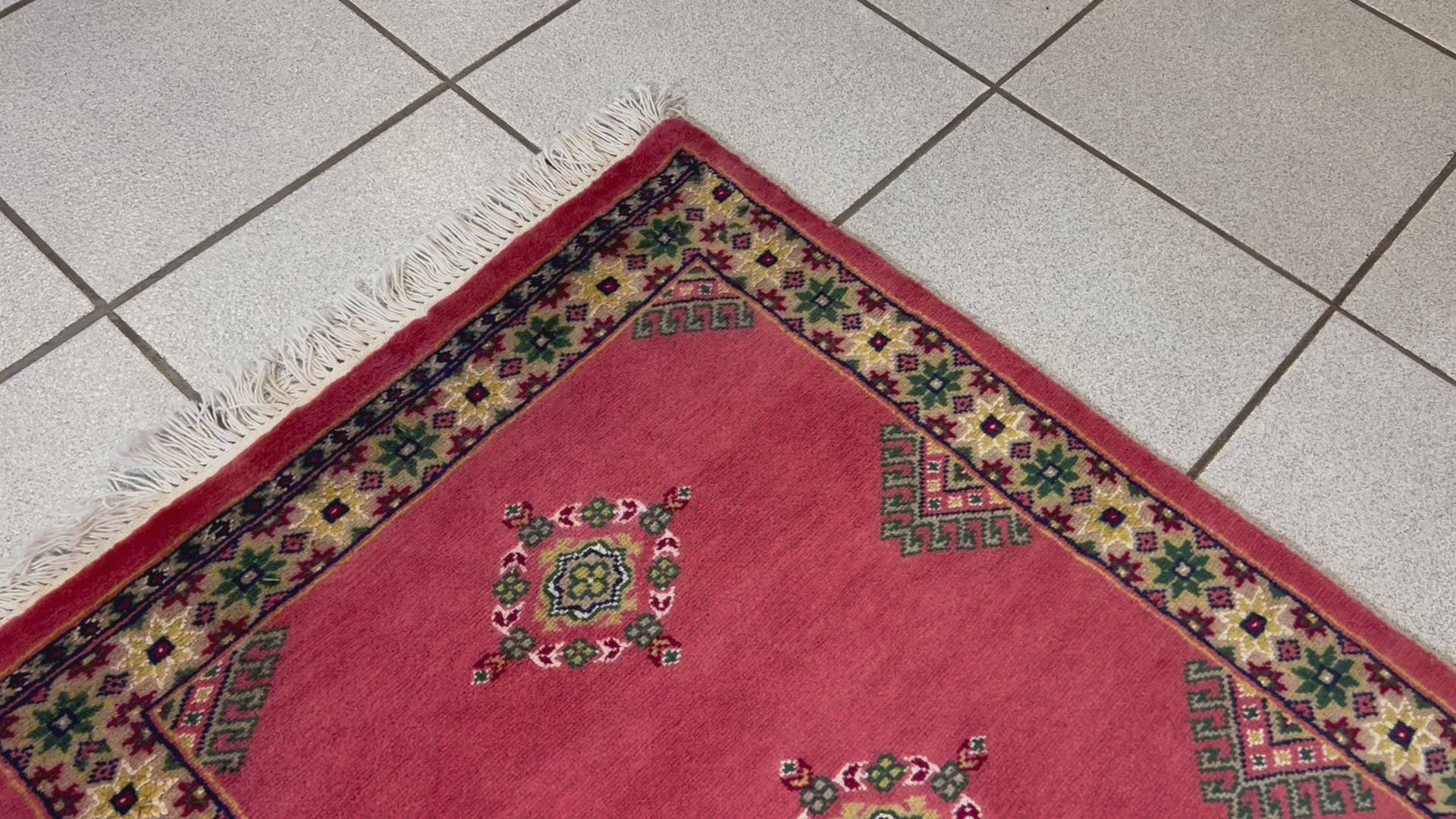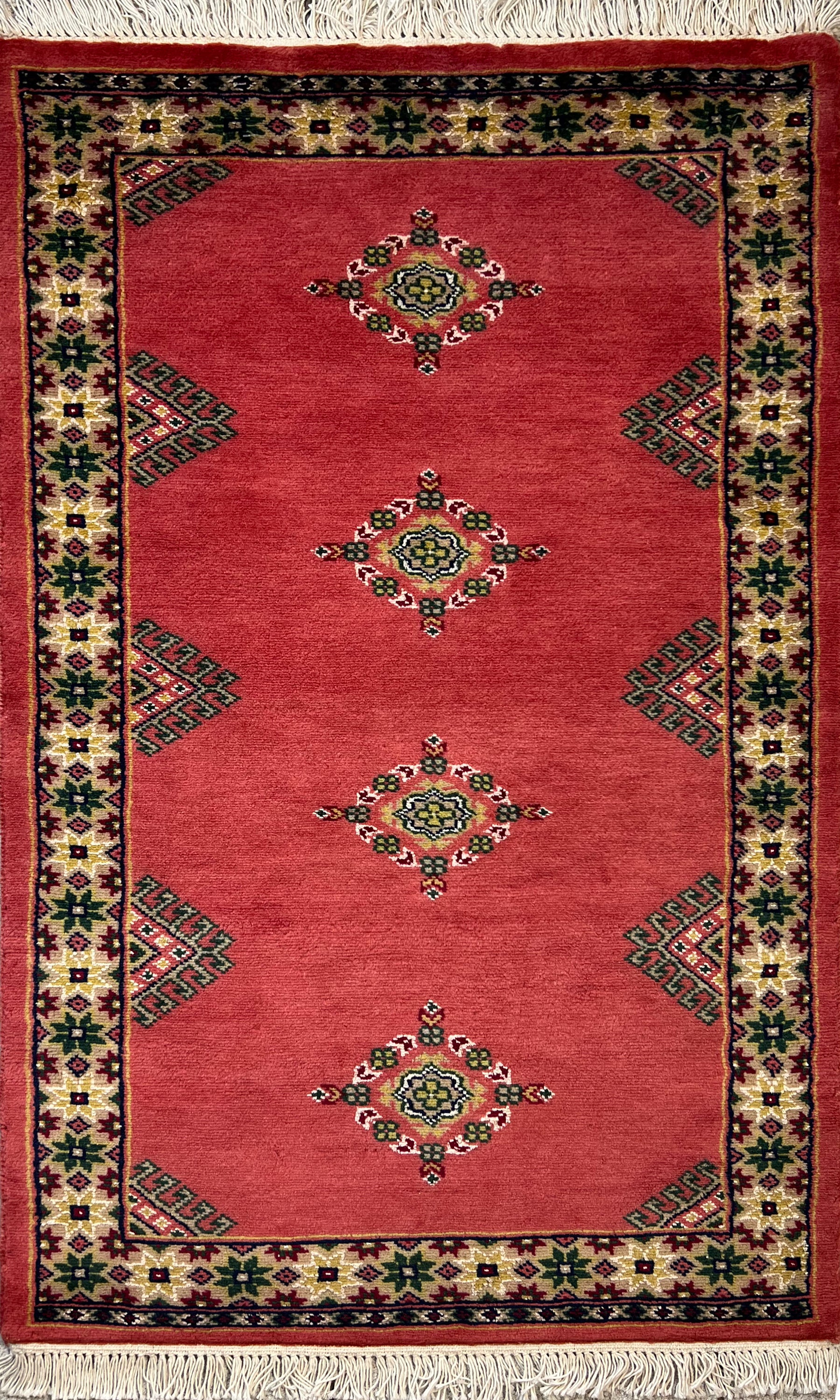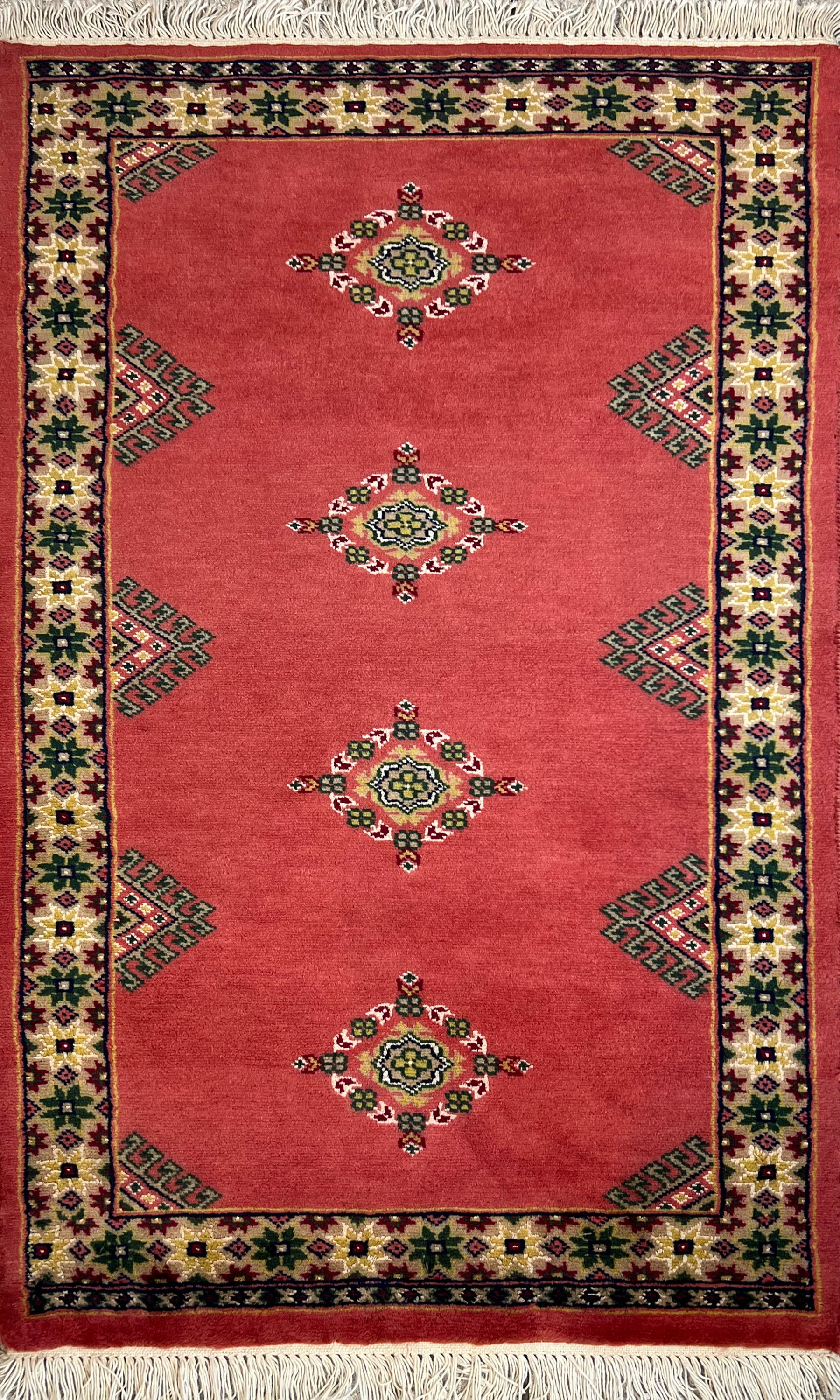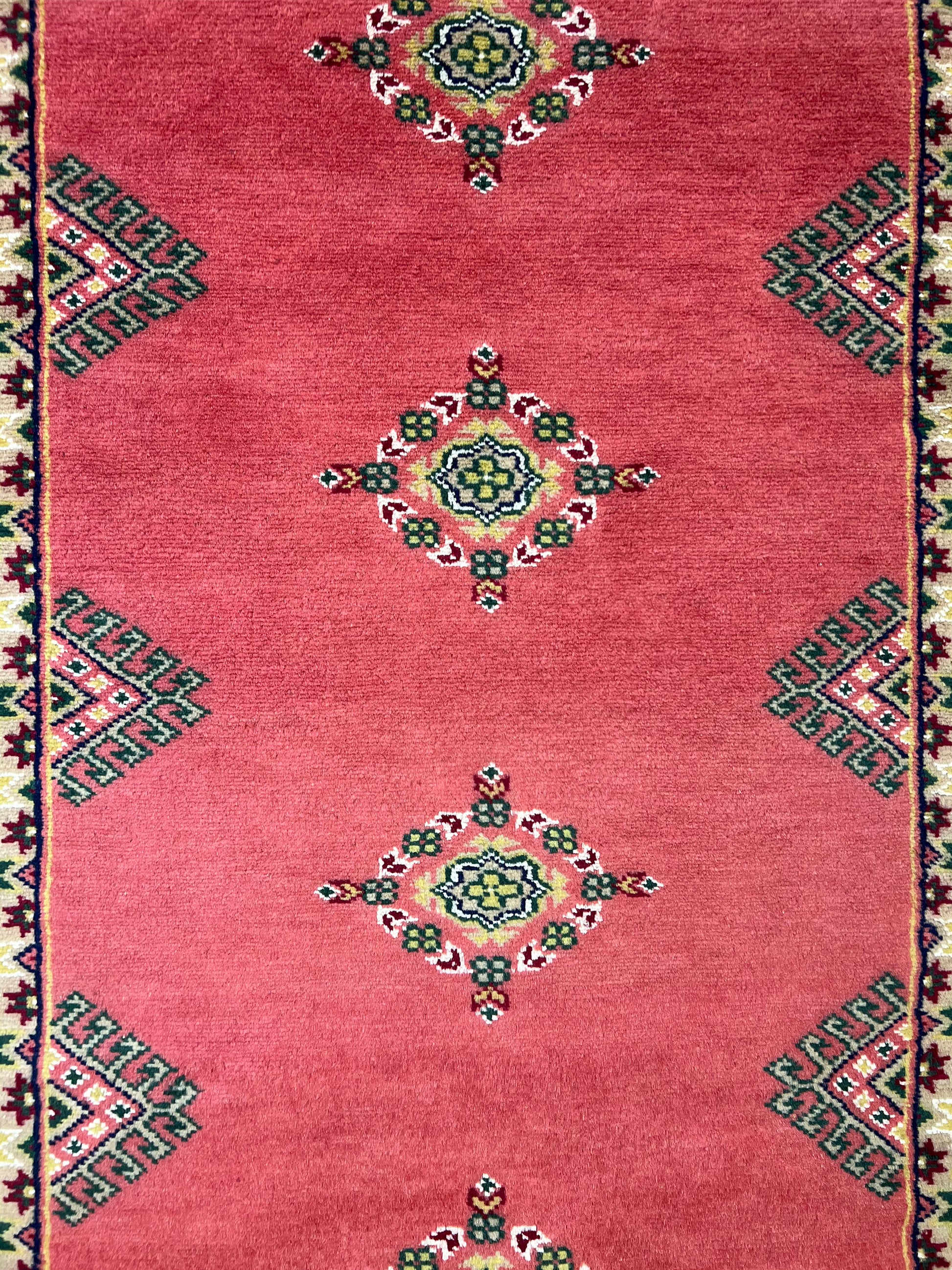 Bokhara is a term widely used in the West to refer to carpets and rugs made by various Turkmen tribes of Central Asia. Their history dates back centuries. The Turkomans were situated to the north of what is now called Afghanistan. During the early 1900s, the name of Bukhara, a city in Uzbekistan, was given to these rugs. The Turkomans were an industrious people who would barter their trade for food, clothing, etc. As a result, their weaving would invariably show up in bazaars (a type of market) in cities such as Bukhara, hence the name. The city did serve as a transit point for some Turkmen rugs on their way to the West. Nowadays, Bokharas are considered among the finest carpets in Afghanistan and Pakistan, distinguished by their extra fine knots and soft, silky touch. They are also popular worldwide due to their suitability to almost any space.