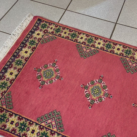 Bokhara is a term widely used in the West to refer to carpets and rugs made by various Turkmen tribes of Central Asia. Their history dates back centuries. The Turkomans were situated to the north of what is now called Afghanistan. During the early 1900s, the name of Bukhara, a city in Uzbekistan, was given to these rugs. The Turkomans were an industrious people who would barter their trade for food, clothing, etc. As a result, their weaving would invariably show up in bazaars (a type of market) in cities such as Bukhara, hence the name. The city did serve as a transit point for some Turkmen rugs on their way to the West. Nowadays, Bokharas are considered among the finest carpets in Afghanistan and Pakistan, distinguished by their extra fine knots and soft, silky touch. They are also popular worldwide due to their suitability to almost any space.