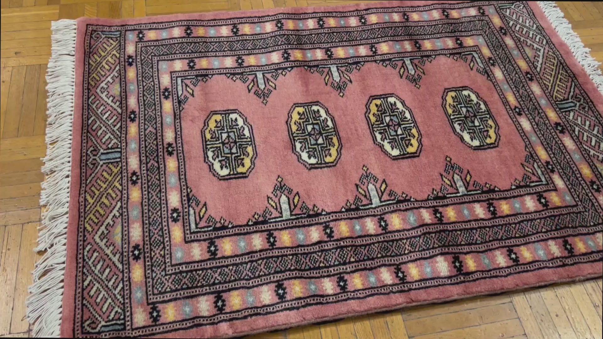 Bokhara is a term widely used in the West to refer to carpets and rugs made by various Turkmen tribes of Central Asia. Their history dates back centuries. The Turkomans were situated to the north of what is now called Afghanistan. During the early 1900s, the name of Bukhara, a city in Uzbekistan, was given to these rugs. The Turkomans were an industrious people who would barter their trade for food, clothing, etc. As a result, their weaving would invariably show up in bazaars (a type of market) in cities such as Bukhara, hence the name. The city did serve as a transit point for some Turkmen rugs on their way to the West. Nowadays, Bokharas are considered among the finest carpets in Afghanistan and Pakistan, distinguished by their extra fine knots and soft, silky touch. They are also popular worldwide due to their suitability to almost any space.