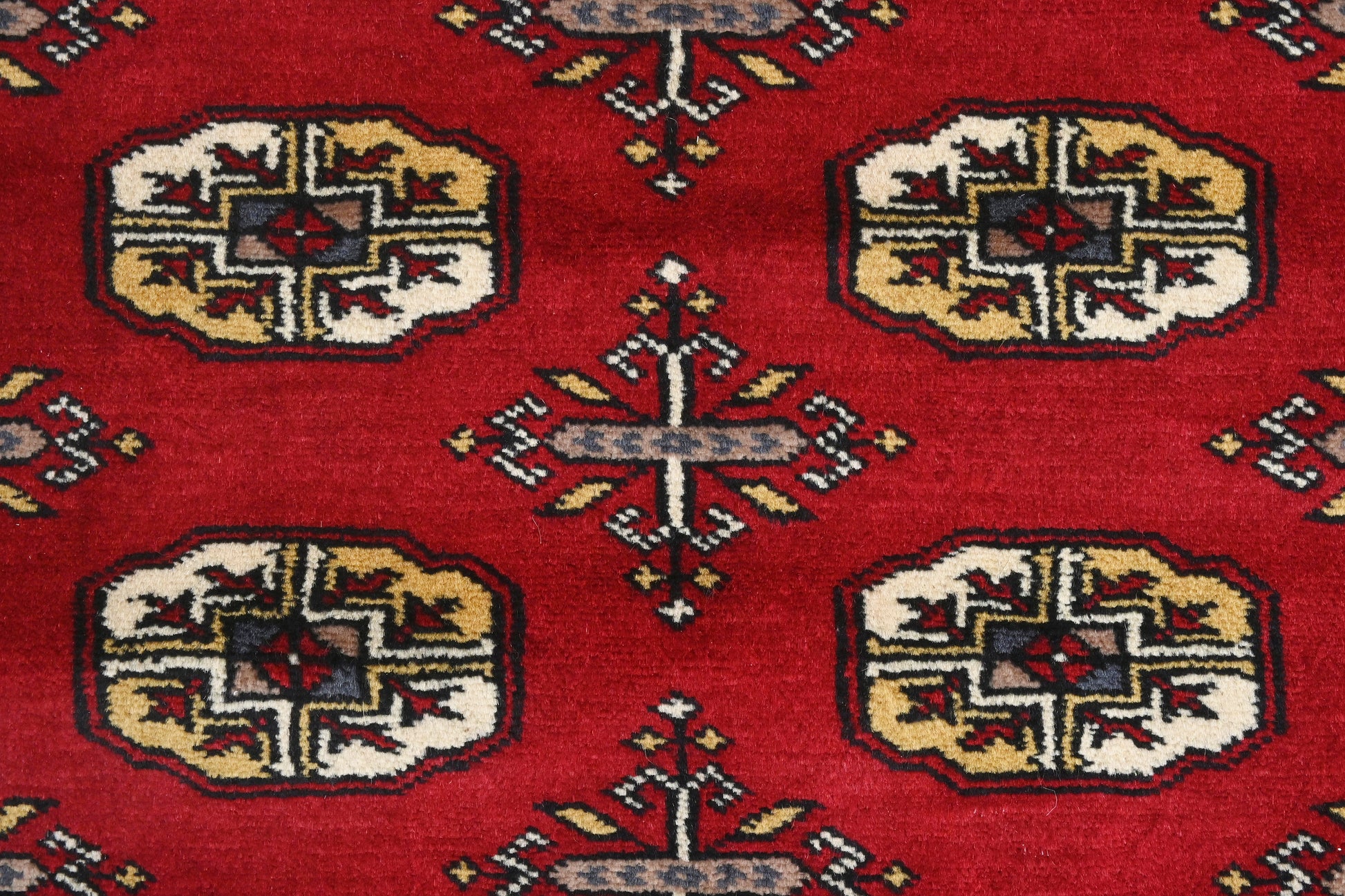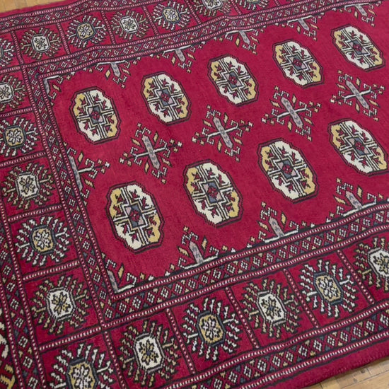 Bokhara is a term widely used in the West to refer to carpets and rugs made by various Turkmen tribes of Central Asia. Their history dates back centuries. The Turkomans were situated to the north of what is now called Afghanistan. During the early 1900s, the name of Bukhara, a city in Uzbekistan, was given to these rugs. The Turkomans were an industrious people who would barter their trade for food, clothing, etc. As a result, their weaving would invariably show up in bazaars (a type of market) in cities such as Bukhara, hence the name. The city did serve as a transit point for some Turkmen rugs on their way to the West. Nowadays, Bokharas are considered among the finest carpets in Afghanistan and Pakistan, distinguished by their extra fine knots and soft, silky touch. They are also popular worldwide due to their suitability to almost any space.