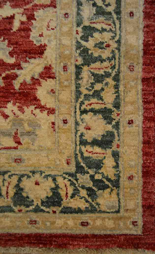 Here is an impressively woven and beautifully composed Ziegler style Oriental rug from Afghanistan. This area rug is made of pure wool and all natural vegetable dyes. Due to having dyes ranging from a combination of tree bark to various plants, fruits and, at times, insects, it is among the most labour intensive rugs to produce. Its patterns are based on antique persian designs. In the oriental and persian rug community, they are also refered to by some as Peshawar rugs, Sultanabad rugs or Chobi rugs depending on the merchant you are shopping at. This type of carpet is among the most desired and most popular rugs in the western world particularly in North America.