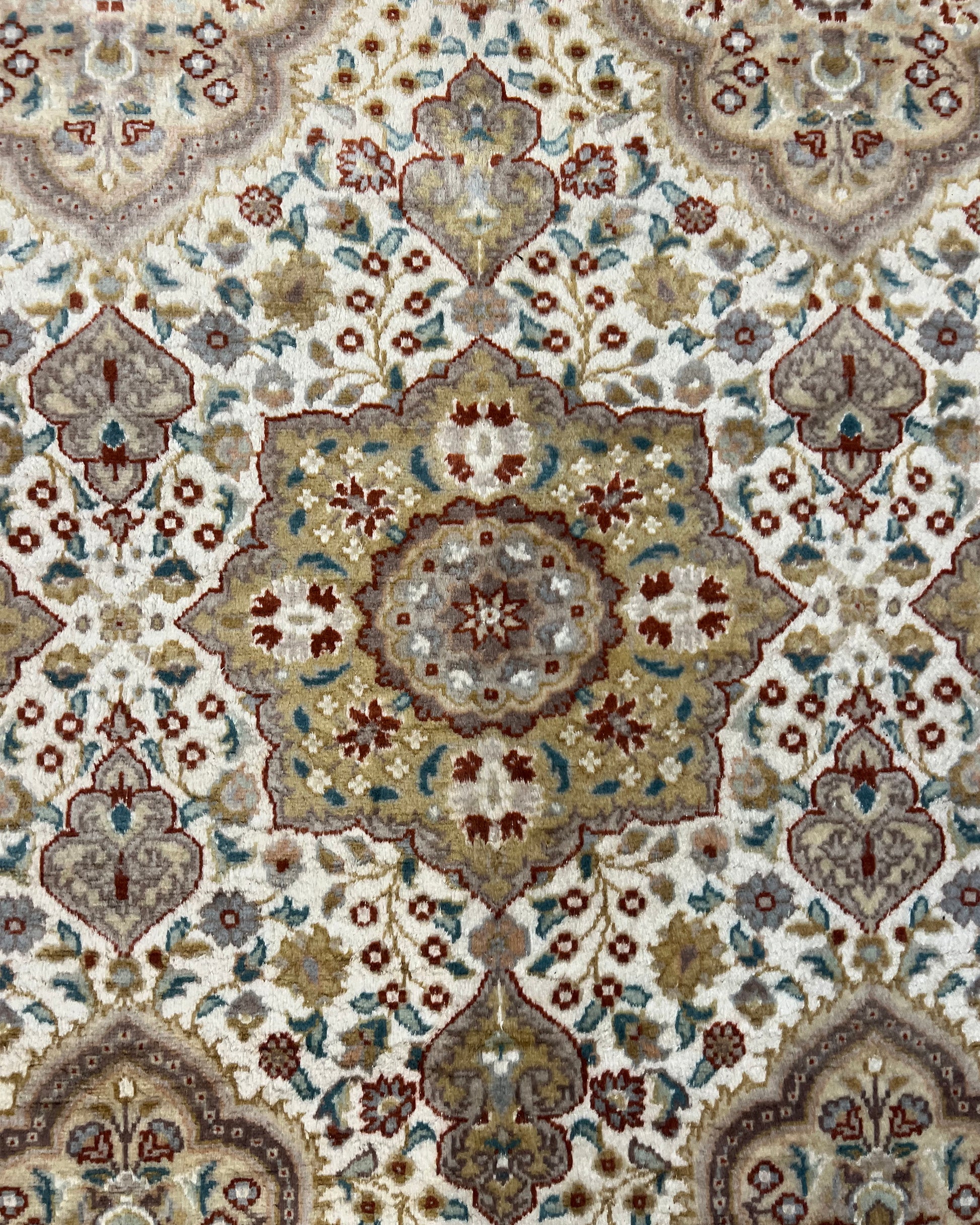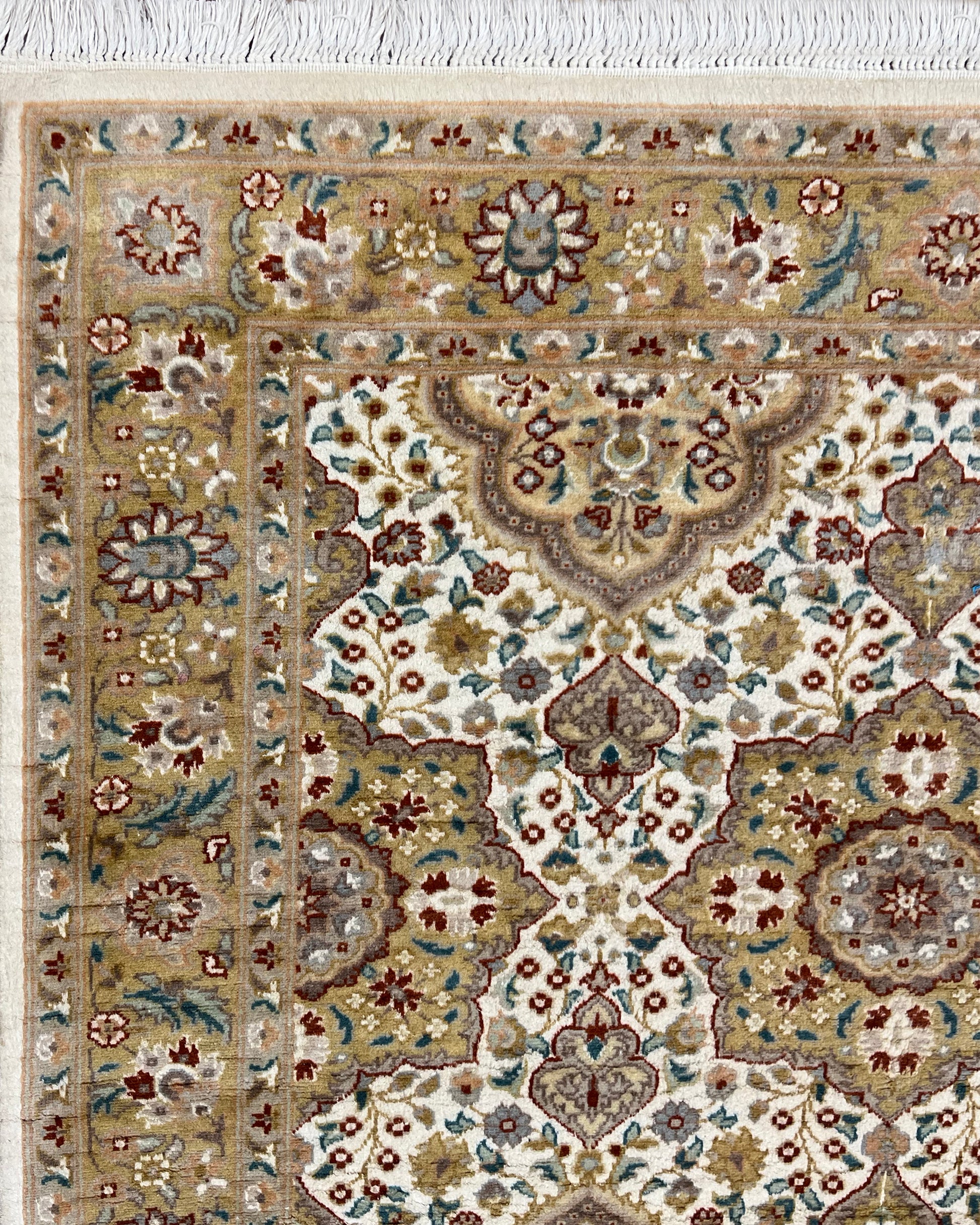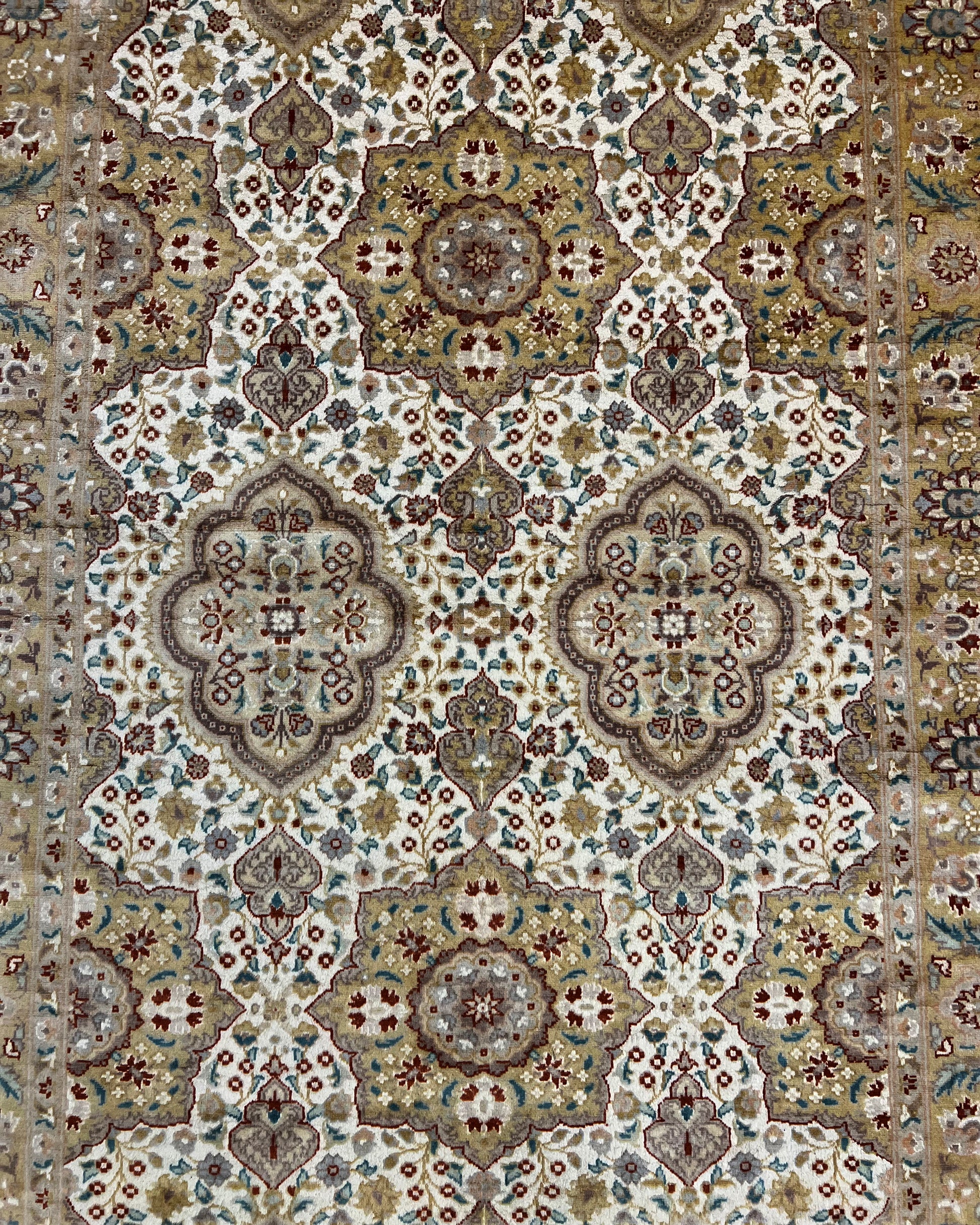 The Mughal emperors Shah Jahan (1627-1658) and Shah Aurangzeb (1658-1707) had a great appreciation for this particular style and they commissioned their weavers to replicate these fine delicate motifs in the carpets that adorned their palaces throughout India. In 1730 the Persian Shah Nadir Quli (1688-1747) conquered parts of India and returned home with countless treasures, including textiles and Millefleurs carpets. This made a great impact on the decorative arts of Persia and the surrounding territories.