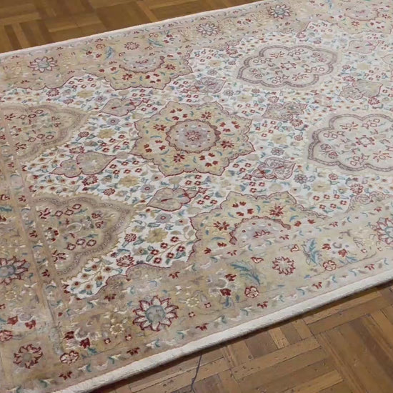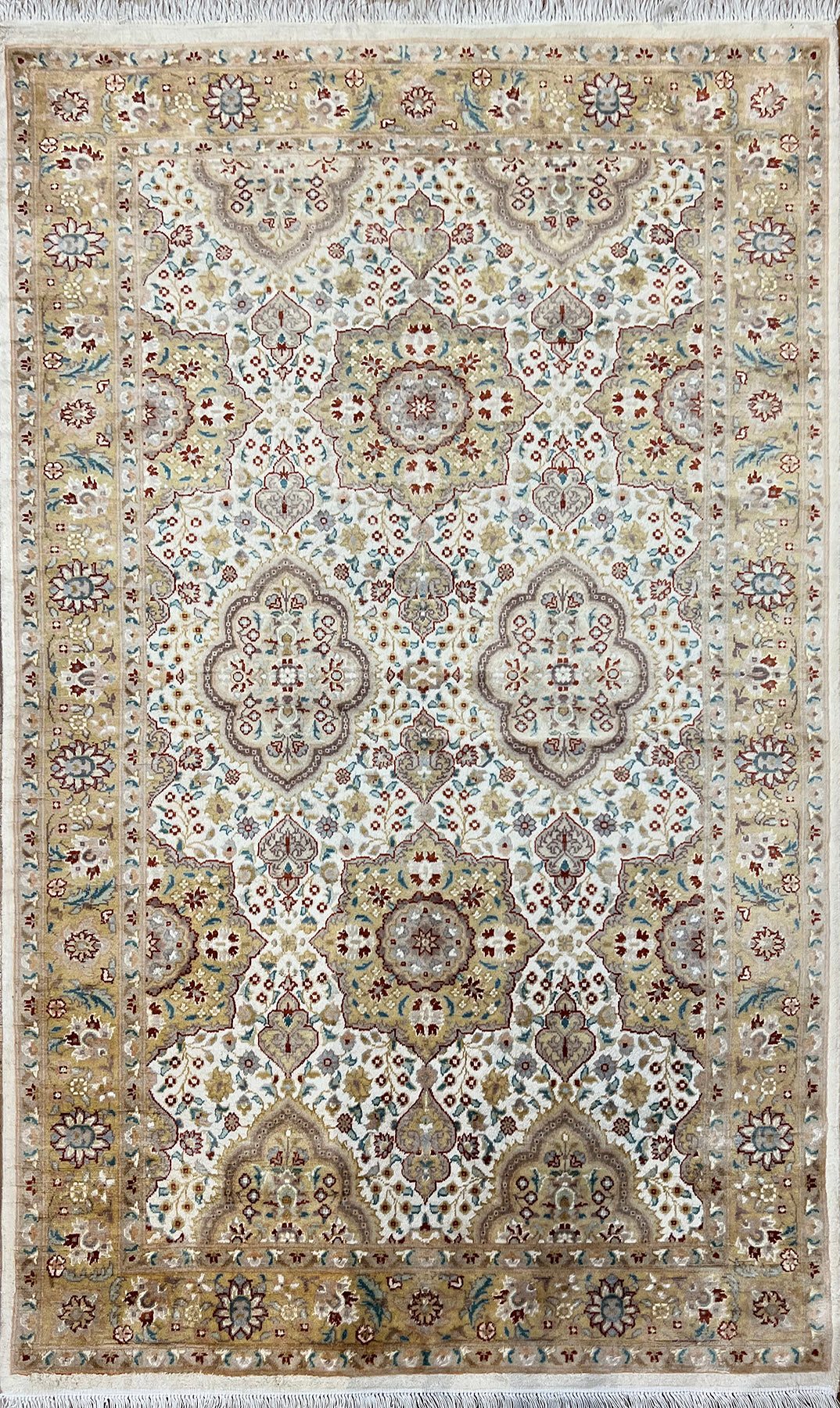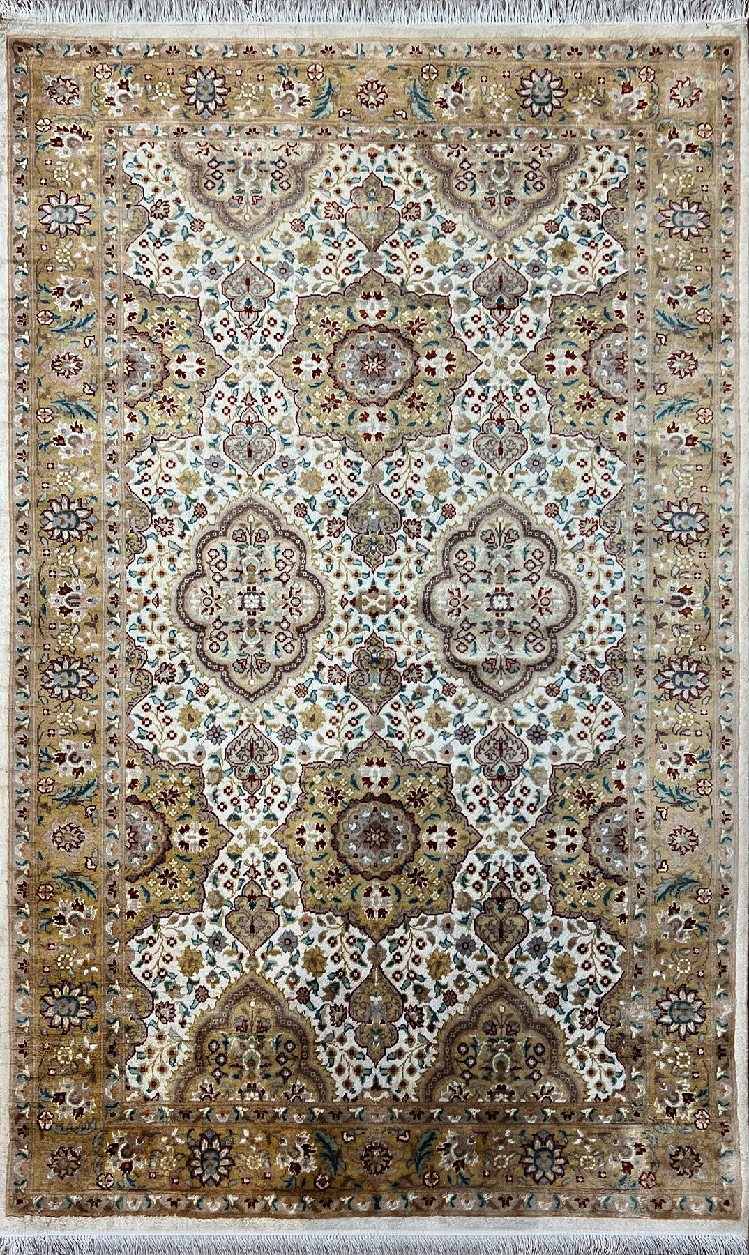 The Mughal emperors Shah Jahan (1627-1658) and Shah Aurangzeb (1658-1707) had a great appreciation for this particular style and they commissioned their weavers to replicate these fine delicate motifs in the carpets that adorned their palaces throughout India. In 1730 the Persian Shah Nadir Quli (1688-1747) conquered parts of India and returned home with countless treasures, including textiles and Millefleurs carpets. This made a great impact on the decorative arts of Persia and the surrounding territories.