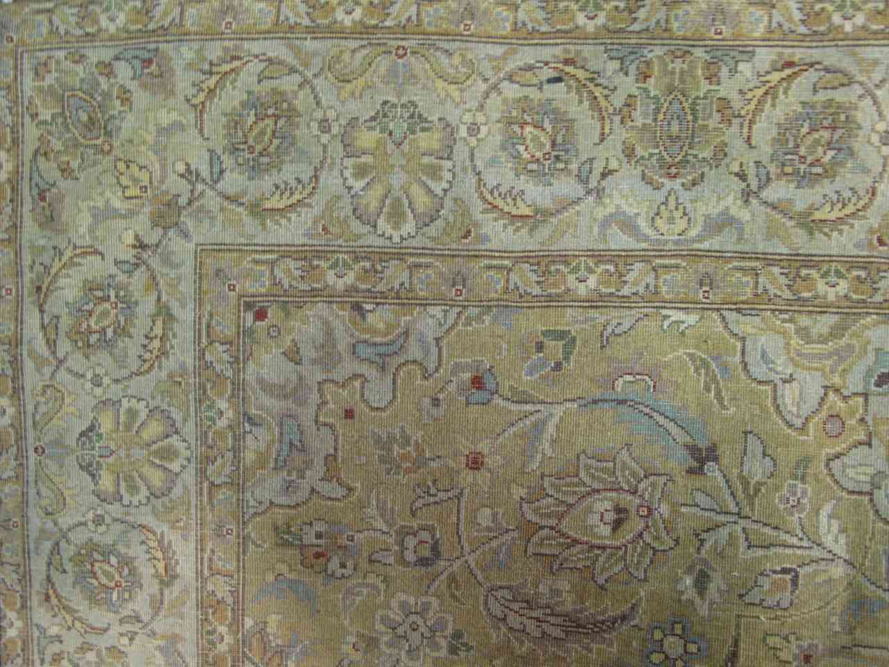 The colors used in Ghoum rugs are as diverse as the designs. The overall appearance could either be pale with background and border colors such as ivory, champagne, turquoise and light green, or it could be dark with background colors such as dark blue and even sometimes red. Red, blue and green are also used as motif colors. Other commonly used colors in Ghoum rugs are mushroom, rose, gold, yellow ocher and orange ocher. To learn more about iranian rugs,