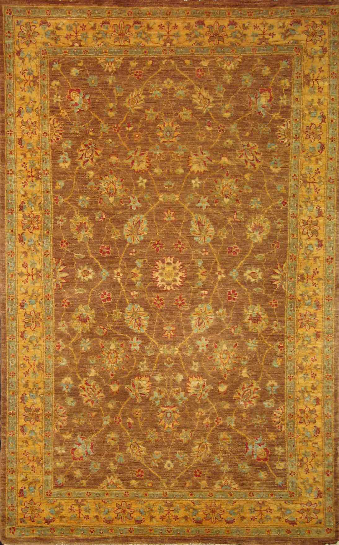 Ziegler, also spelled Zeigler, is a term used to describe carpets produced by the late 19th century Anglo-Swiss firm: Ziegler & Company or it is a term used when describing carpets that are made with similar designs and color combinations used by the late firm. Rugs containing this design are sometimes known as Chobi rugs (which translates to wood in Farsi, a reference to their natural color created by vegetable dyes) or Peshawar rugs (a city in Pakistan known for mass producing this type of design). Most new Ziegler design rugs are crafted in Afghanistan or in Pakistan by Afghan refugees and contain bold floral patterns. They are made with vegetable dyes and their knot count generally varies from 80 to 120 KPSI (Knots Per Square Inch). The carpets wool is of high quality: either hand-spun Ghazni wool or Himalayan wool making its pile very durable. Much like sodas tasting like Coca-cola being called Coke regardless of their brand, Ziegler design carpets are known as Ziegler even though they may not be produced by Ziegler & Co. Depending on whom you ask, they can sometimes be regarded as Sultanabad carpets because Ziegler & Co had workshops spread throughout the Sultanabad district of Iran.