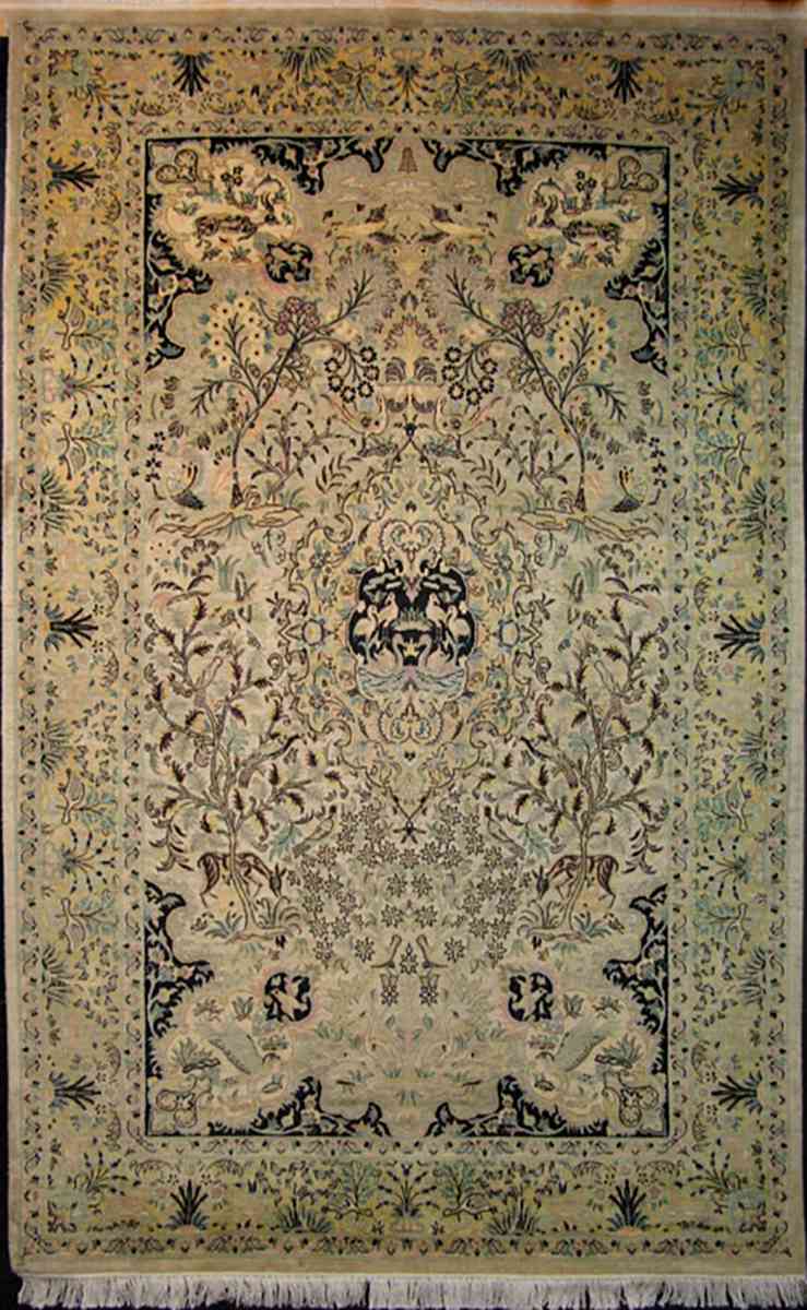 There was a time when the design of an Oriental rug told, with some degree of certainty, the country and city, or the village or district where the rugs were woven. That is only partially true today. Persian, Oriental and Indo cultures love gardens. It is their Paradise. Many Persian, Oriental and Indian rugs showcase gardens. They depict many types of flowers and trees even hedged in with borders. Some may represent orchards and fields of flowers. Birds and animals are often found in their carpets. Many flowers can be recognized such as the tulip, the rose, the narcissus, the flower of henna, pinks and many others.