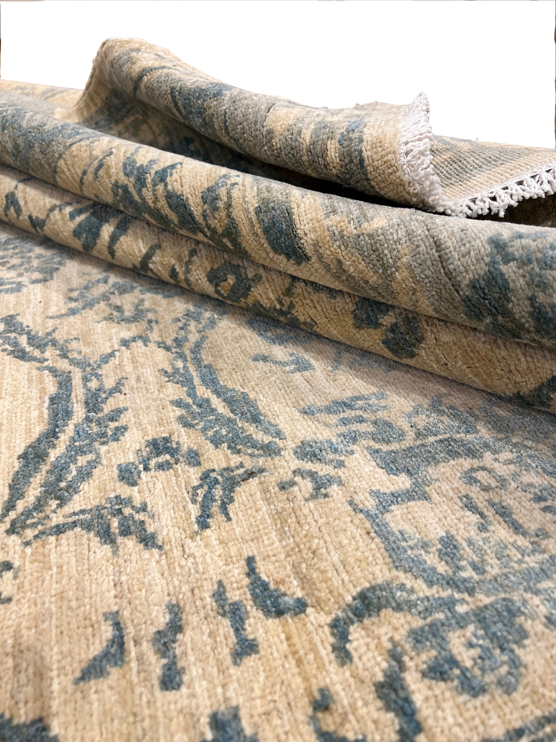 This diligently hand-knotted area rug is made of 80% pure lamb’s wool, 20% Pure Silk. Wool is a natural material, representing a healthy choice that is environmentally friendly with a long list of benefits. The pile of this wool rug is hygienic and non-allergenic, as the natural pile also deters the growth of bacteria and dust mites. It represents a great choice for asthma sufferers due to its natural filtering ability. The rug feels soft under the foot while remaining wear-resistant and long-lasting. With proper maintenance tailored to its needs, this rug can last over 75 years. Homeowners benefit from an extra grip which is important for balance, good posture, and accident prevention. Moreover, wool rugs are flame resistant. Cleaning is also easier due to a protective layer that pushes dirt up and resists staining. In fact, it will trap dirt and dust until it is vacuumed. A wool rug is also a great option for adding the look and feel of luxury to any space, as wool is a luxurious material.