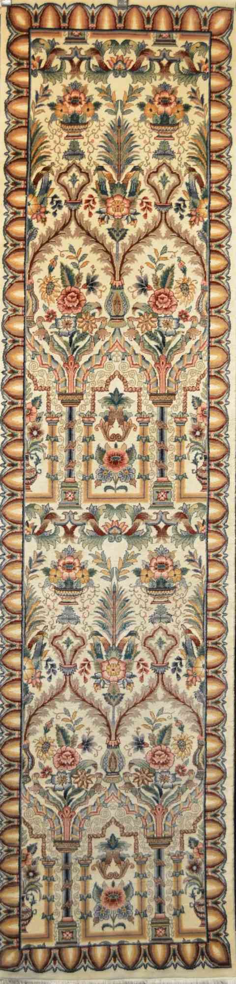 The granting of a license by Henri IV to Pierre Dupont in France, 1608, to manufacture Savonnerie carpets is similar in spirit to the establishment of court workshops by the Mughals and Safavids, whose common aim was to produce superlative works of art, including carpets. In 1627 Louis XVIII gave a royal privilege to Dupont (1577-1640) and his pupil Simon Lourdet (d.1671) for weaving carpets. They set up business in an old soap factory, hence the name Savonnerie, which quickly became the label attached to the products of the factory - carpets, panels and wall hangings - all created exclusively for the court. From the beginning, individual designers were employed to create designs, all of which were European in style.