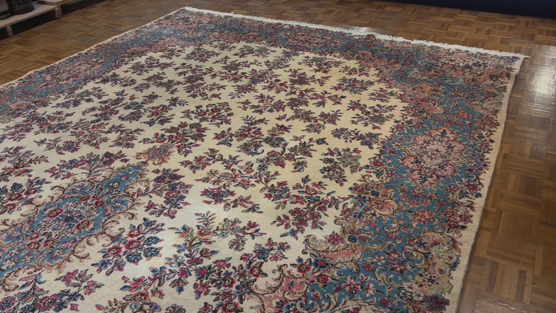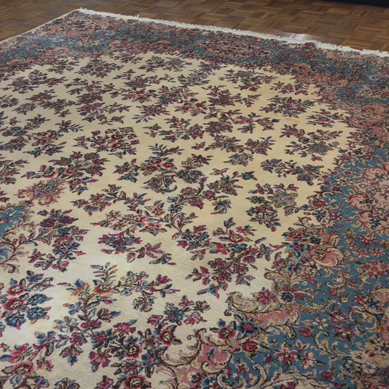 It is often hard to pinpoint exactly what constitutes a Carmania design, as the motifs and patterns used are typical of many centres of Persian carpet production. Floral medallions and corner motifs are popular, as are flowering tree patterns and pictorial hunting designs. Pale washed-out colours such as beige and white are typical. The Lavar is a very finely knotted large piece, with an unusual overall small floral pattern on an ivory field. It was possibly made specially to order. Lavar is now the accepted term for carpets produced in Ravar, near Carmania. Lavar was originally a misspelling. They are a particular kind of Carmania which, although quite rare, are famous for the superb quality of the weave. Typically woven in pinky colours, Lavars are very popular in America.