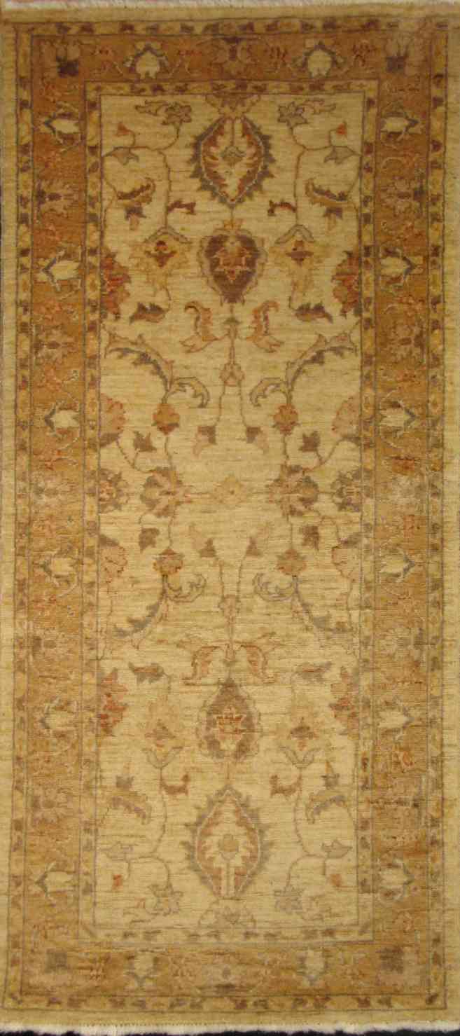 Ziegler, also spelled Zeigler, is a term used to describe carpets produced by the late 19th century Anglo-Swiss firm: Ziegler & Company or it is a term used when describing carpets that are made with similar designs and color combinations used by the late firm. Rugs containing this design are sometimes known as Chobi rugs (which translates to wood in Farsi, a reference to their natural color created by vegetable dyes) or Peshawar rugs (a city in Pakistan known for mass producing this type of design). Most new Ziegler design rugs are crafted in Afghanistan or in Pakistan by Afghan refugees and contain bold floral patterns. They are made with vegetable dyes and their knot count generally varies from 80 to 120 KPSI (Knots Per Square Inch). The carpets wool is of high quality: either hand-spun Ghazni wool or Himalayan wool making its pile very durable. Much like sodas tasting like Coca-cola being called Coke regardless of their brand, Ziegler design carpets are known as Ziegler even though they may not be produced by Ziegler & Co. Depending on whom you ask, they can sometimes be regarded as Sultanabad carpets because Ziegler & Co had workshops spread throughout the Sultanabad district of Iran.