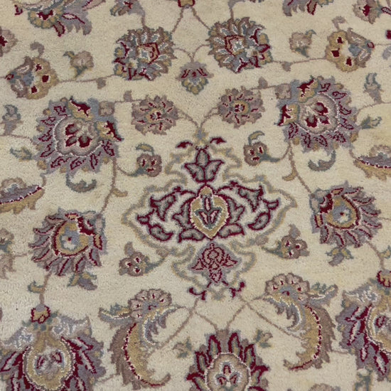 This diligently hand-knotted area rug is made of 100% pure lamb’s wool. Wool is a natural material, representing a healthy choice that is environmentally friendly with a long list of benefits. The pile of this wool rug is hygienic and non-allergenic, as the natural pile also deters the growth of bacteria and dust mites. It represents a great choice for asthma sufferers due to its natural filtering ability. The rug feels soft under the foot while remaining wear-resistant and long-lasting. With proper maintenance tailored to its needs, this rug can last over 75 years. Homeowners benefit from an extra grip which is important for balance, good posture, and accident prevention. Moreover, wool rugs are flame resistant. Cleaning is also easier due to a protective layer that pushes dirt up and resists staining. In fact, it will trap dirt and dust until it is vacuumed. A wool rug is also a great option for adding the look and feel of luxury to any space, as wool in itself is a luxurious material.